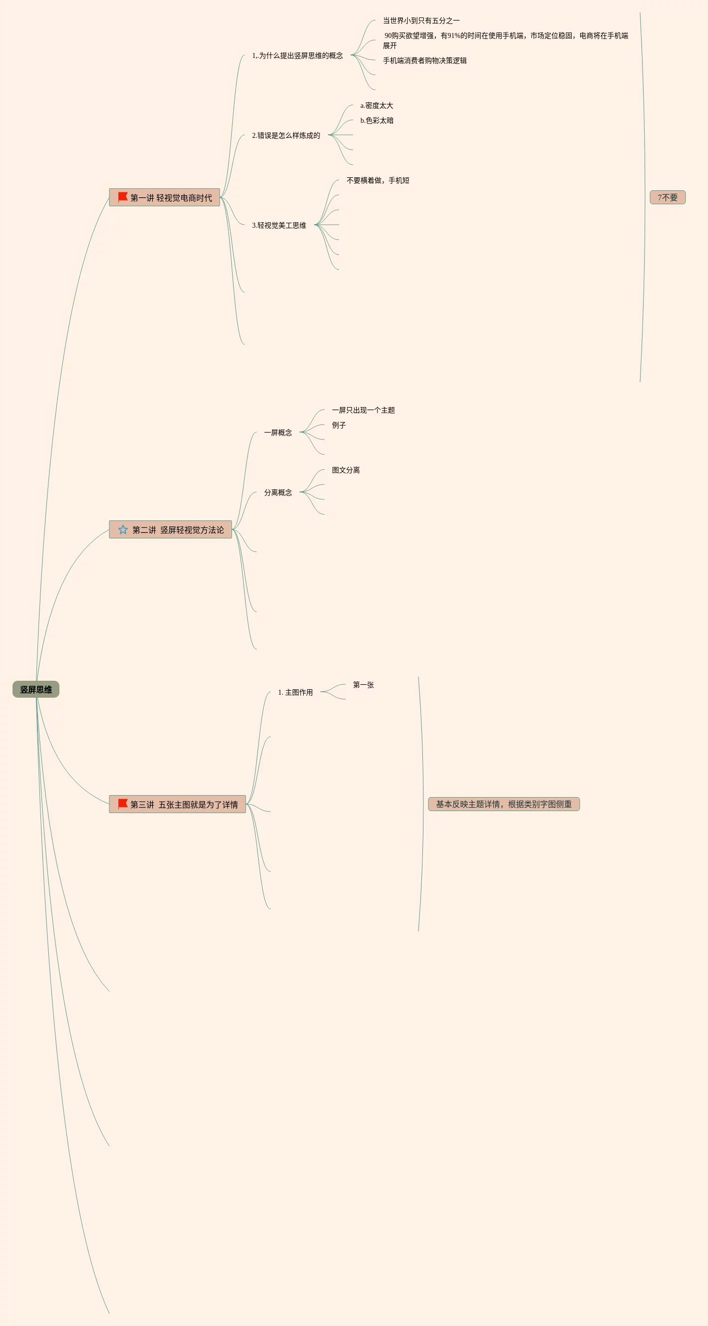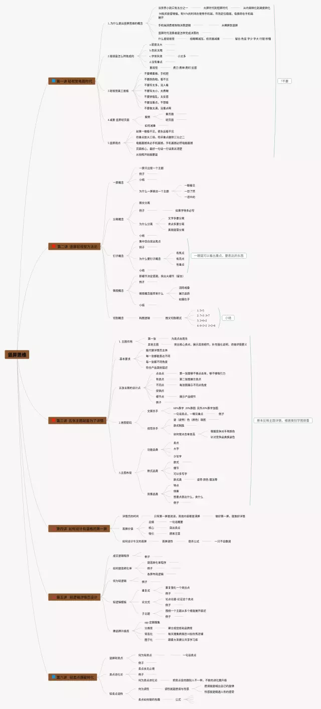 25张竖式思维导图合集,竖式思维导图,内容涵盖第一讲 轻视觉电商时代、 第二讲 竖屏轻视觉方、第三讲 五张主图就是为了详情、第五讲 轻逻辑详情页设计、第六讲 轻卖点爆破转化等5个方面,25张附打印高清版,每张思维导图都非常漂亮,每张图片均附打印高清版。