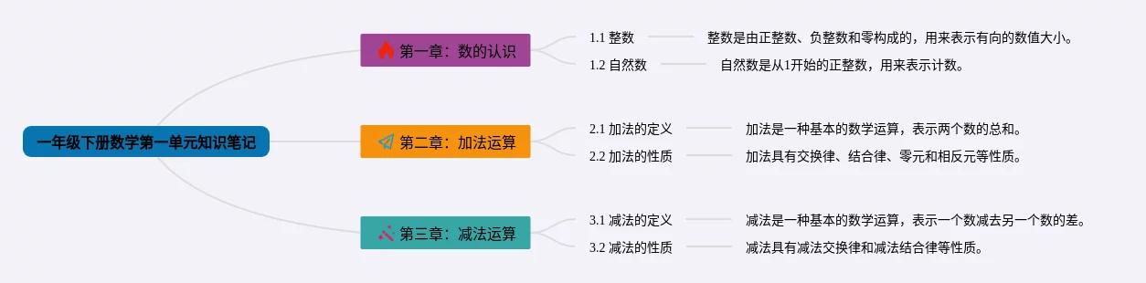 22张一年级下册数学一单元的思维导图汇总,一年级下册数学一单元的思维导图,内容涵盖目录、1. 计数、2. 加法、3. 减法等4个知识点,22张附打印高清版,每张思维导图都非常清晰,每张图片均附打印高清版。