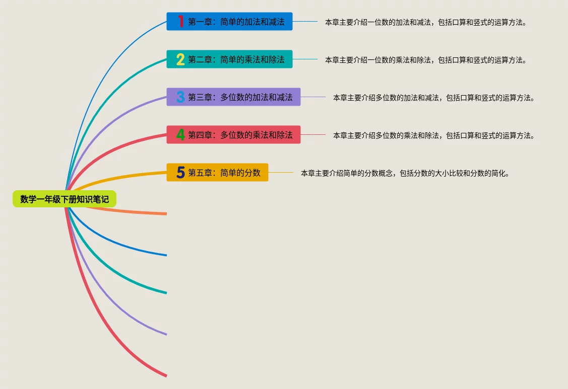 一年级下册数学一单元的思维导图(22张附打印高清版)