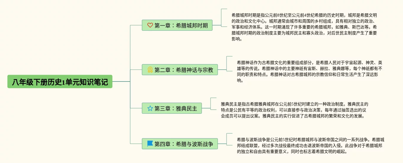 20张八年级下册英语1单元思维导图汇总,八年级下册英语1单元思维导图,内容涵盖第一章希腊城邦时期、第二章希腊神话与、第三章雅典、第四章希腊与波斯战争等4个知识点,20张附下载,每张思维导图都非常清晰,每张图片均附下载。