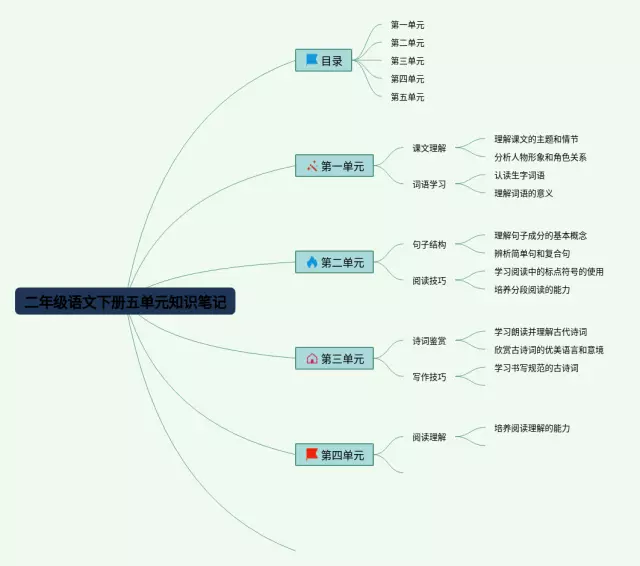 21张二年级下册语文五单元思维导图合集,二年级下册语文五单元思维导图,内容涵盖第一单元、第二单元、第三单元、第四单元、第五单元等5个部分,21张值得收藏,每张思维导图都非常简单,每张图片均值得收藏。