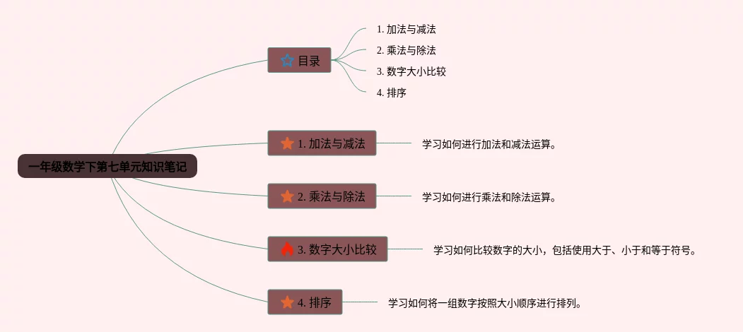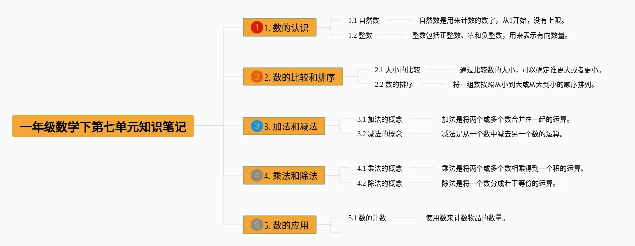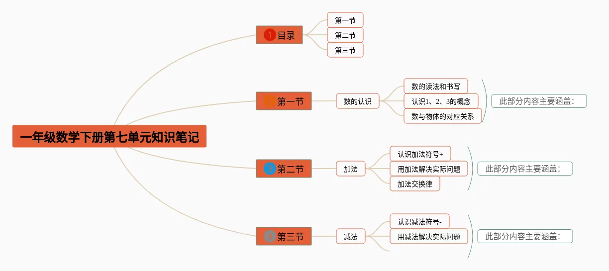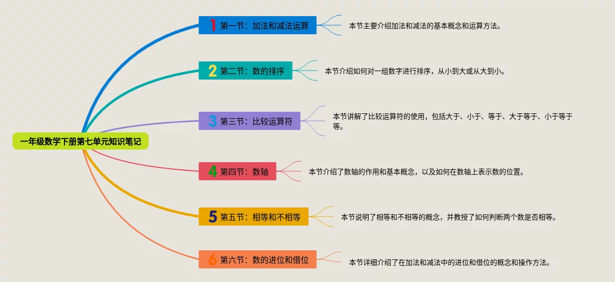 一年级数学下册七单元思维导图(22张高清晰可打印)