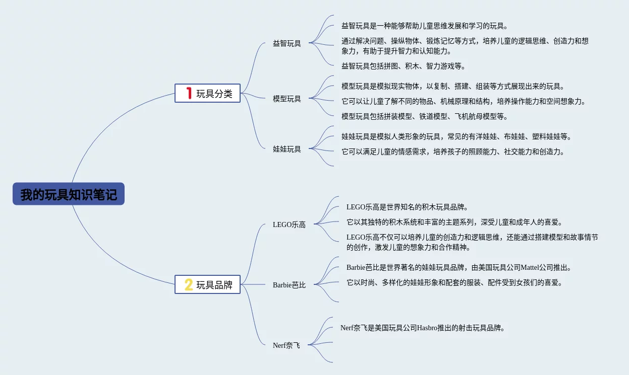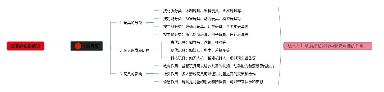 23张玩具的思维导图合集,玩具的思维导图,内容涵盖一级目录、1. 玩具的分类、2. 玩具的发展历程、3. 玩具的影响等4个方面,23张高清版,每张思维导图都非常清晰,每张图片均高清版。