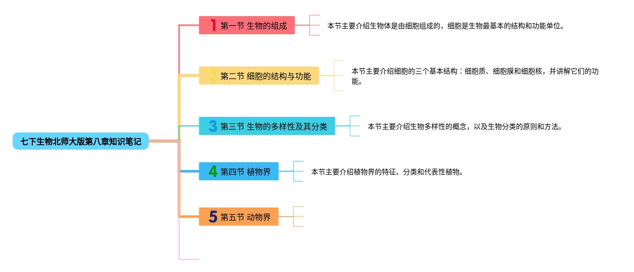 北师大版七下思维导图汇总,七下生物北师大版思维导图,内容涵盖第一节 生物多样性和分类、第二节 动物的多样性、第三节 植物的多样性等3个方面,21张值得收藏,每张思维导图都非常漂亮,每张图片均值得收藏。