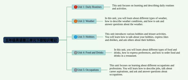 五年级下册第三单元思维导图汇总,英语五年级下册第三单元思维导图,内容涵盖等0个方面,21张高清版,每张思维导图都非常漂亮,每张图片均高清版。