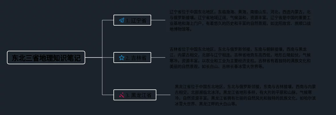 23张东北三省知识点思维导图合集,东北三省知识点思维导图,内容涵盖目录、辽宁省、吉林省、黑龙江省等4个部分,23张可打印,每张思维导图都非常简单,每张图片均可打印。