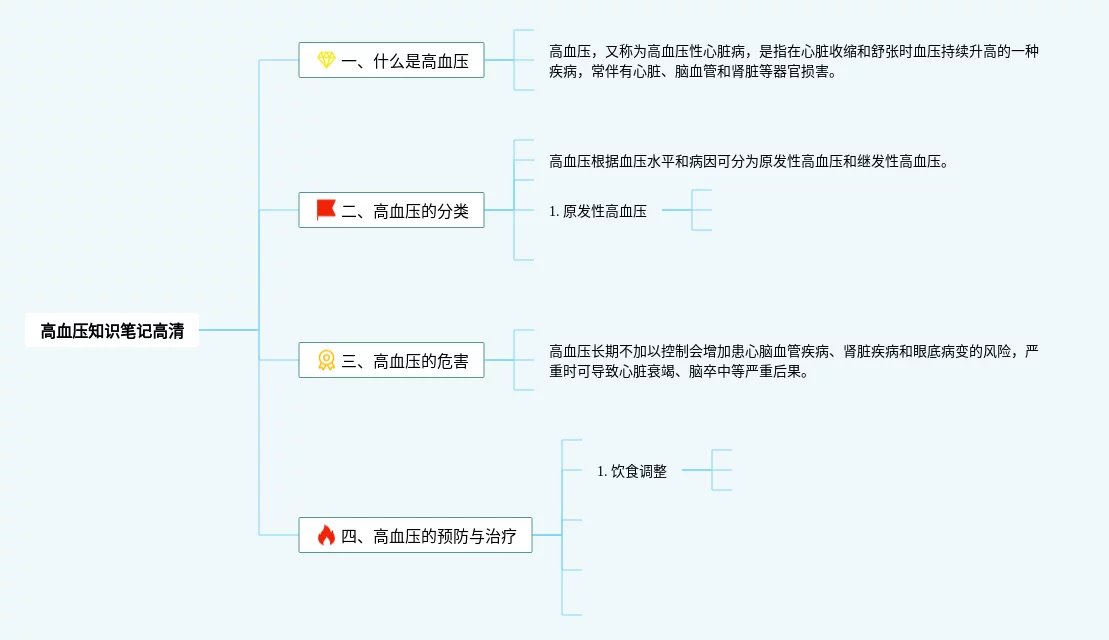 22张高血压思维导图高清合集,高血压思维导图高清,内容涵盖概念及流病特点、病因与发病机制、临床表现、诊断与治疗、主题等5个方面,22张附下载,每张思维导图都非常简单,每张图片均附下载。