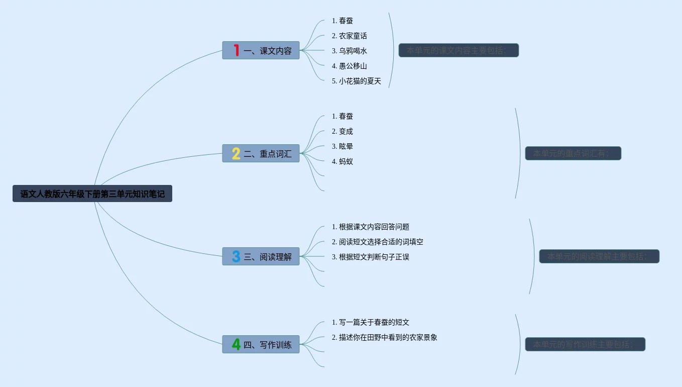 人教版六年级下册第三单元思维导图合集,语文人教版六年级下册第三单元思维导图,内容涵盖课文内容、生字词、重点短语等3个知识点,25张附下载,每张思维导图都非常清晰,每张图片均附下载。