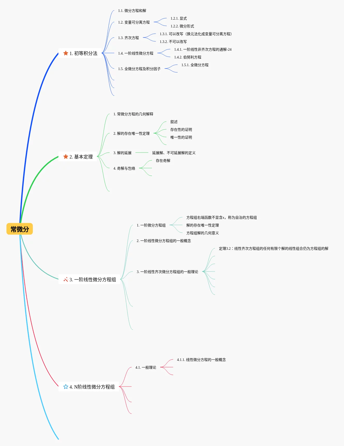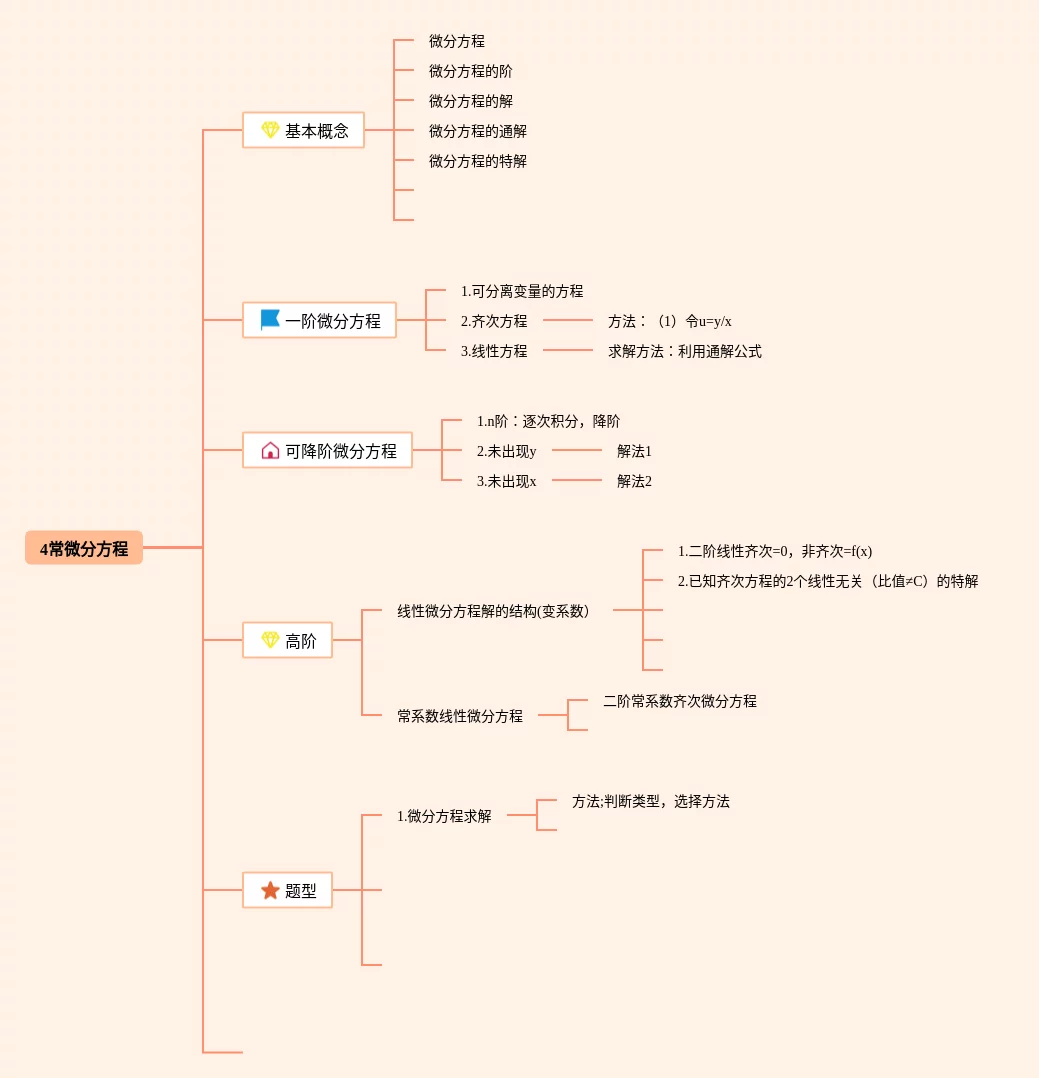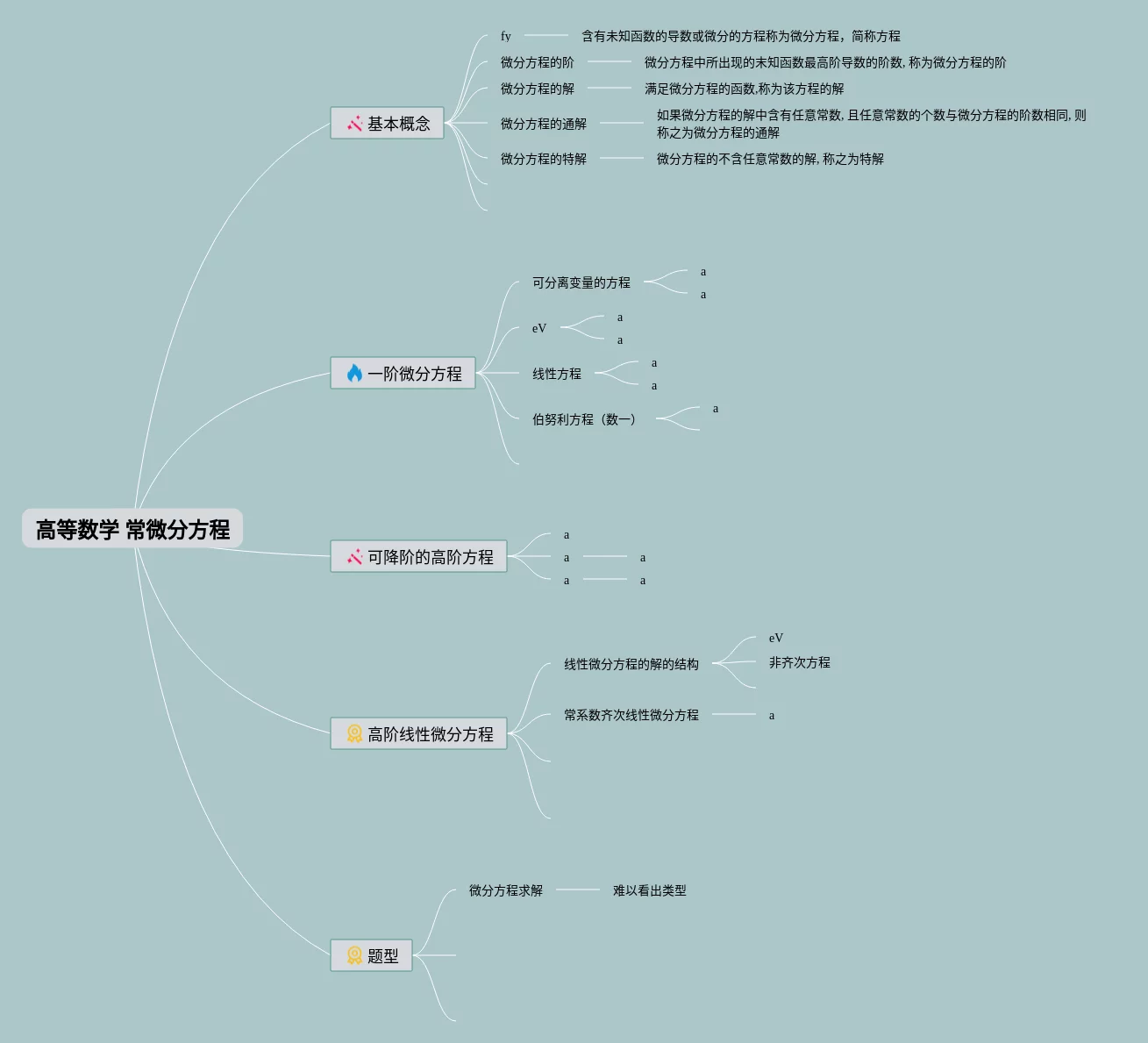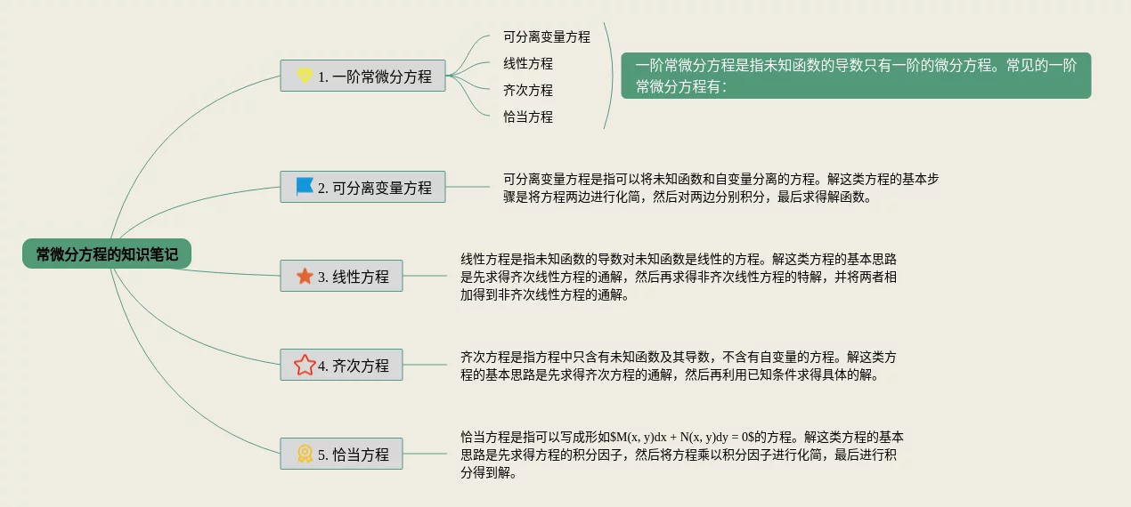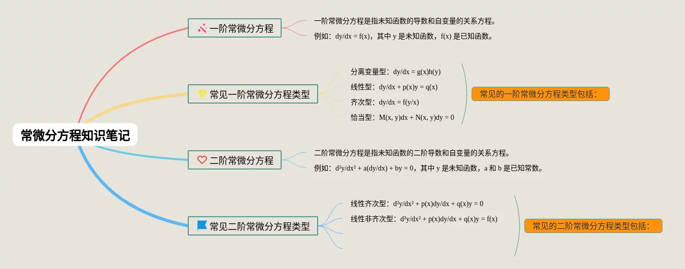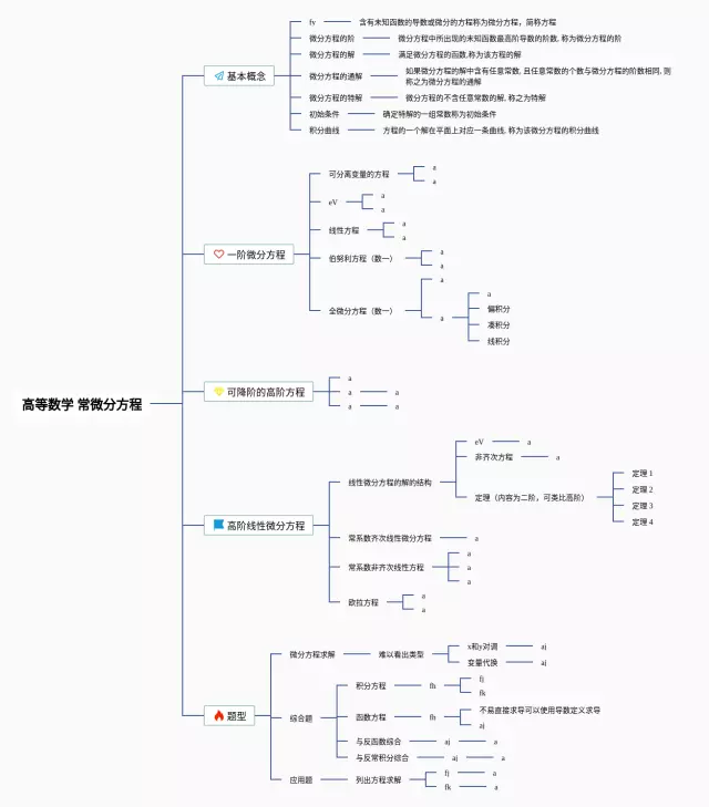 21张常微分思维导图汇总,常微分思维导图,内容涵盖一阶常微分方程、常见一阶常微分方程类型、二阶常微分方程、常见二阶常微分方程类型等4个方面,21张高清版,每张思维导图都非常漂亮,每张图片均高清版。