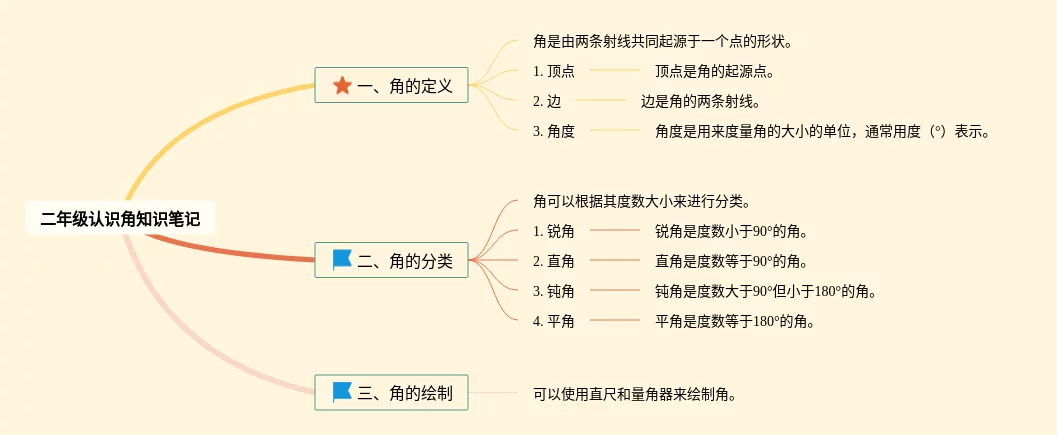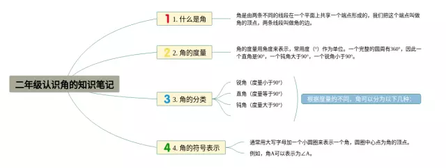 24张二年级角的认识思维导图合集,二年级角的认识思维导图,内容涵盖什么是角、角的种类、角的表示方法、角的度数、角的比较等5个要点,24张精选版,每张思维导图都非常漂亮,每张图片均精选版。
