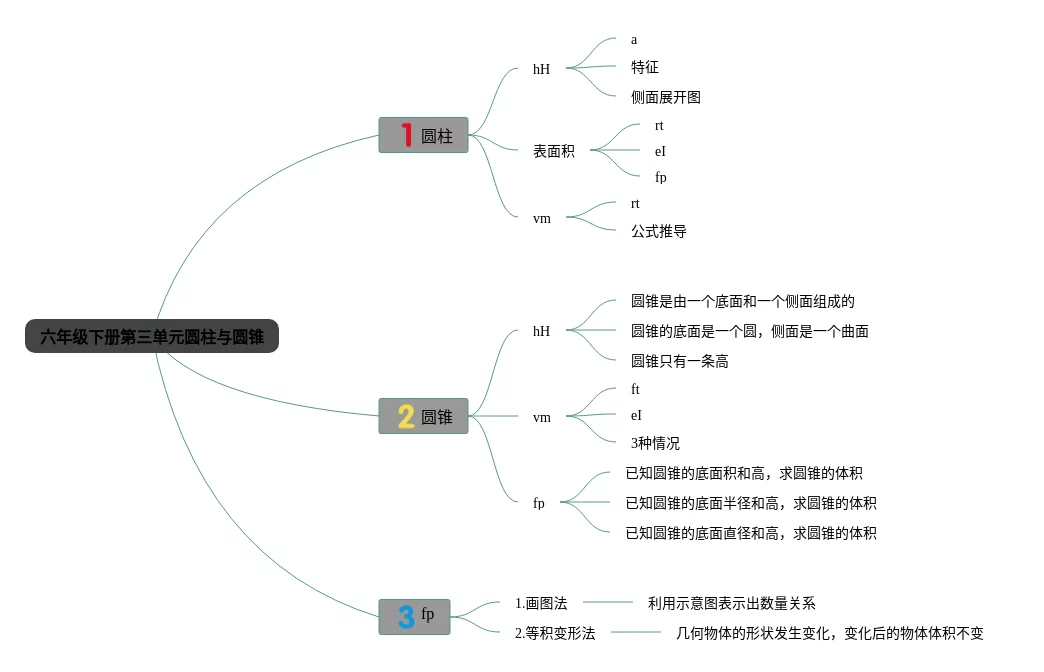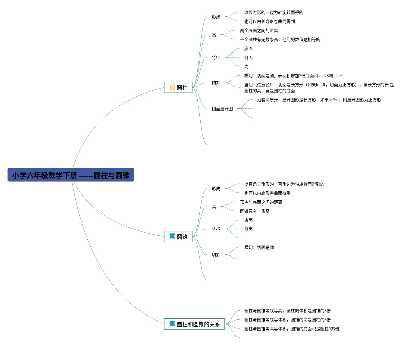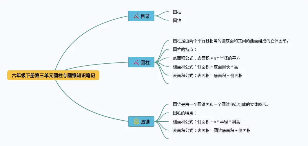 六年级上册数学第三单元圆柱与圆锥思维导图(22张附打印高清版)