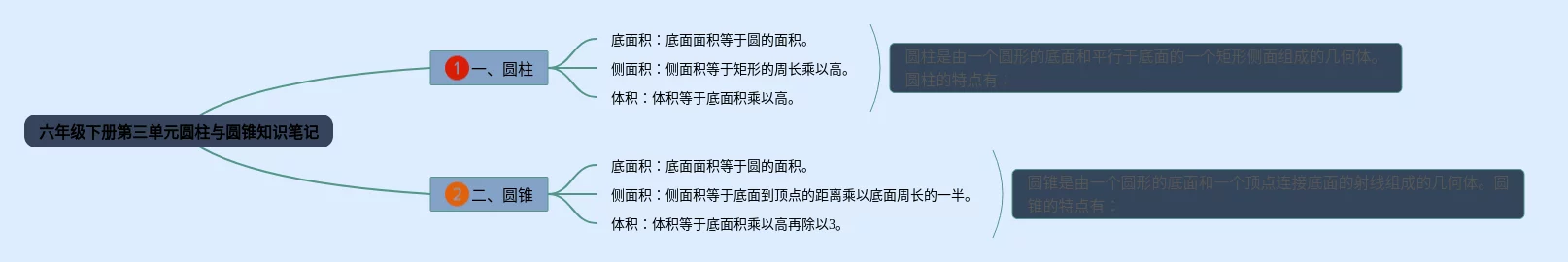 22张六年级上册数学第三单元圆柱与圆锥思维导图汇总,六年级上册数学第三单元圆柱与圆锥思维导图,内容涵盖圆柱、圆锥等2个方面,22张附打印高清版,每张思维导图都非常简单,每张图片均附打印高清版。