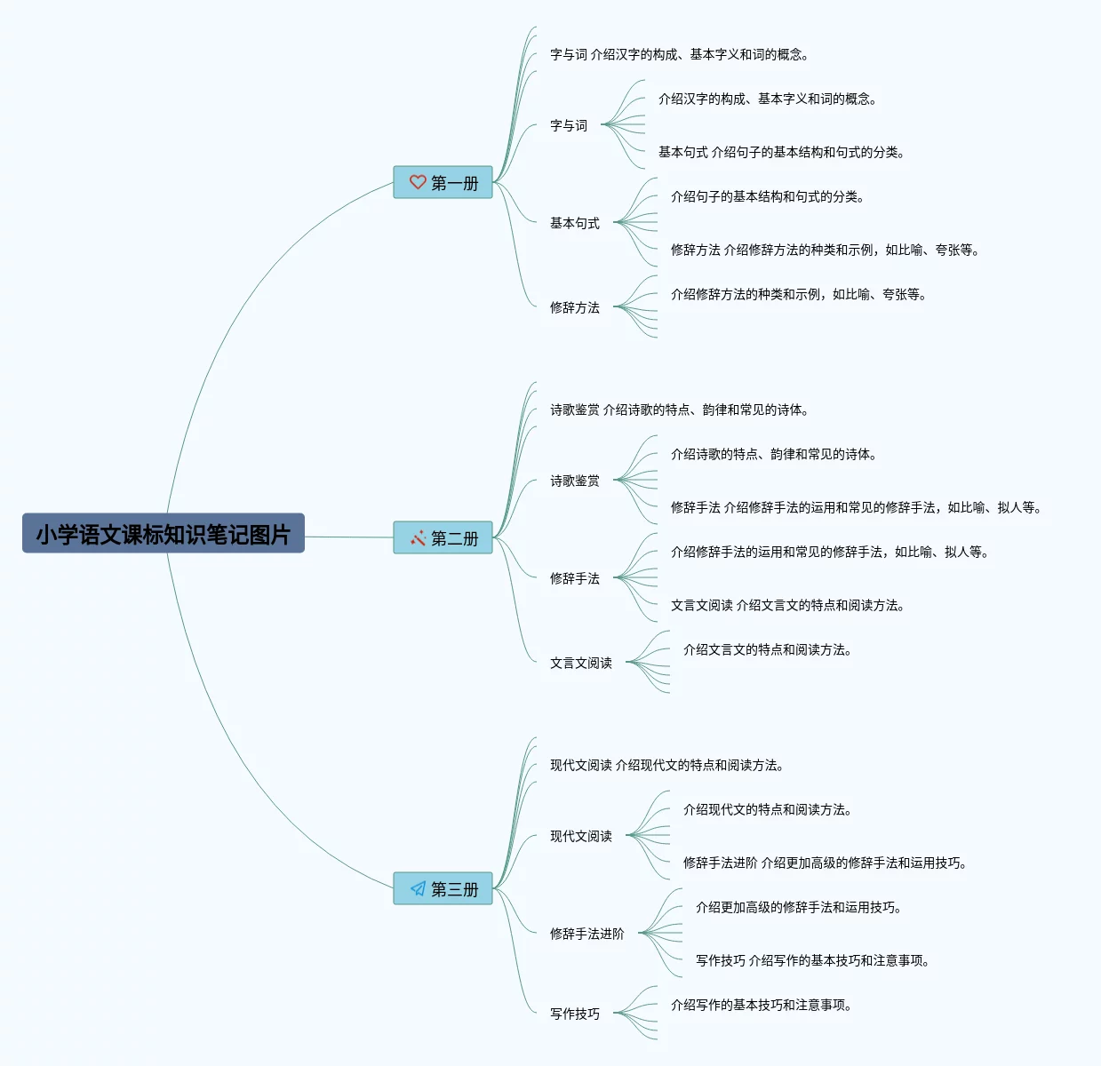 24张小学语文课标思维导图图片合集,小学语文课标思维导图图片,内容涵盖诗词鉴赏、经典文言文阅读、现代文阅读与写作、修辞手法与写作技巧、散文阅读等5个方面,24张附打印高清版,每张思维导图都非常清晰,每张图片均附打印高清版。