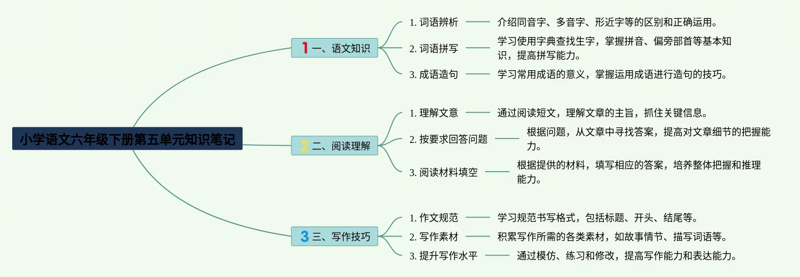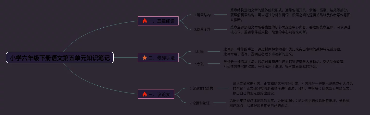 小学六年级下册语文五单元思维导图(24张值得收藏)