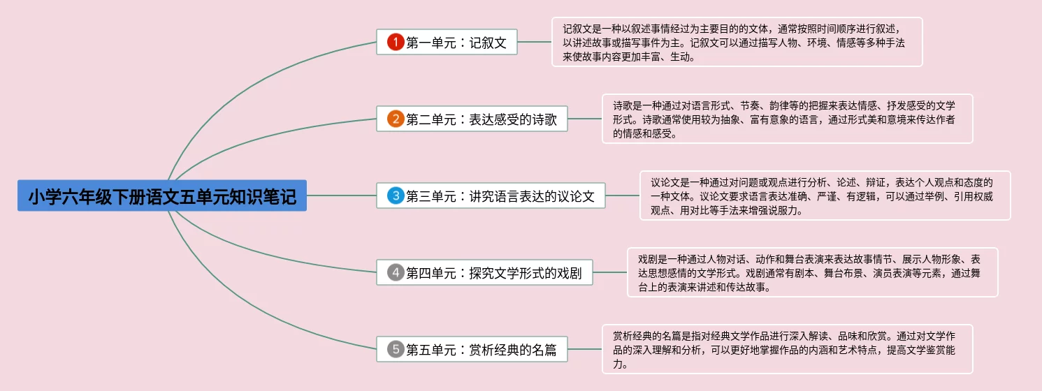24张小学六年级下册语文五单元思维导图合集,小学六年级下册语文五单元思维导图,内容涵盖第一单元、第二单元、第三单元、第四单元、第五单元等6个部分,24张值得收藏,每张思维导图都非常简单,每张图片均值得收藏。