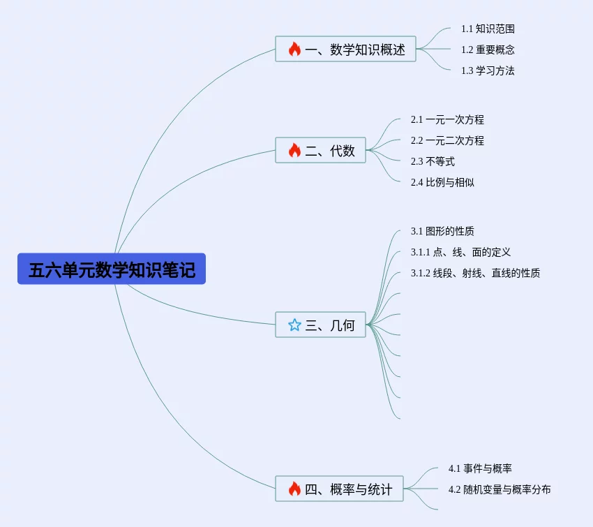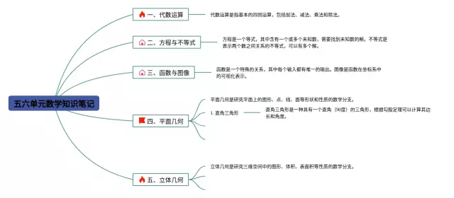 24张六下数学五六单元思维导图合集,六下数学五六单元思维导图,内容涵盖数学知识概述、代数、几何、概率与统计等4个知识点,24张附打印高清版,每张思维导图都非常简单,每张图片均附打印高清版。