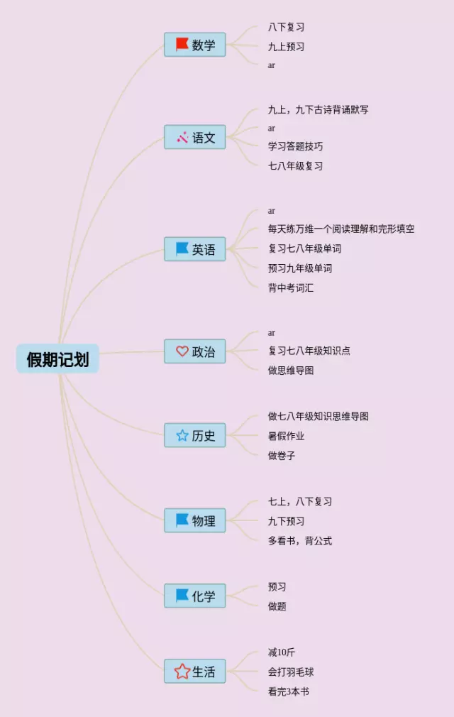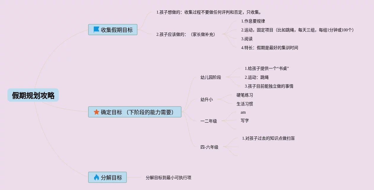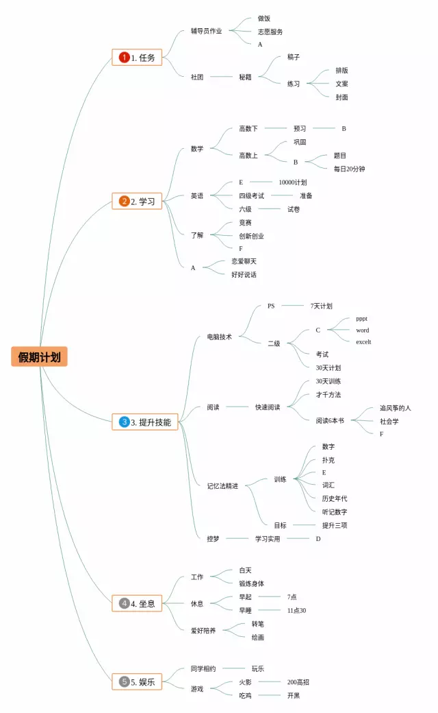 22张假期思维导图汇总,假期思维导图,内容涵盖收集假期目标、确定目标(下阶段的能力需要)、分解目标等3个方面,22张附下载,每张思维导图都非常简单,每张图片均附下载。