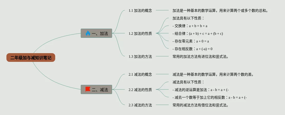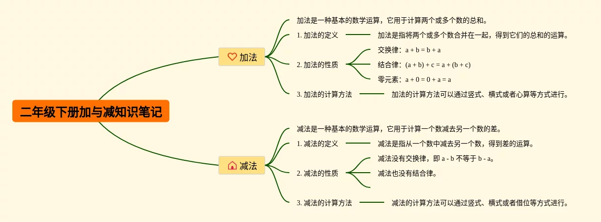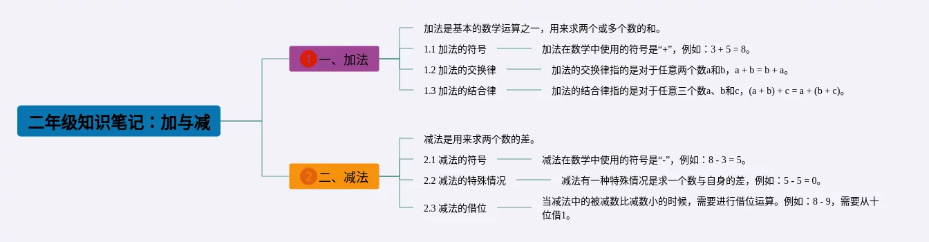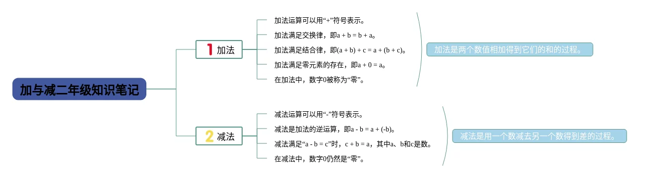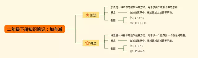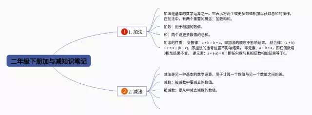 20张二年级下册加与减思维导图合集,二年级下册加与减思维导图,内容涵盖加法、减法、加减混合运算等3个部分,20张精选版,每张思维导图都非常简单,每张图片均精选版。