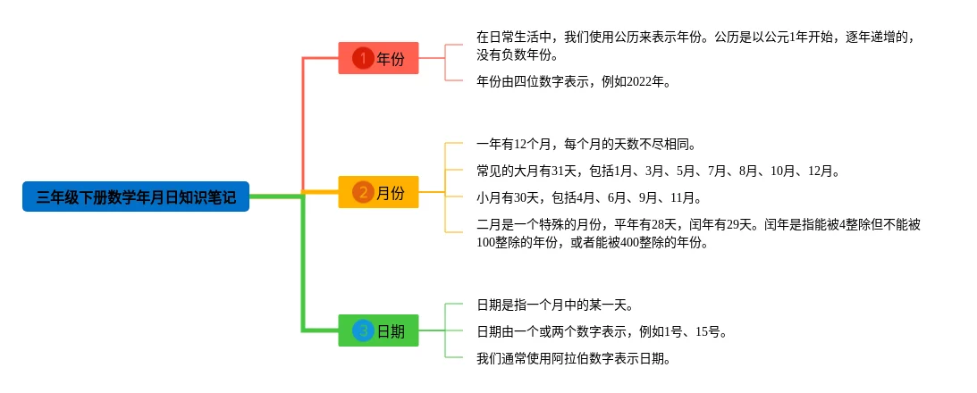 23张三年级下册数学年月日思维导图简单汇总,三年级下册数学年月日思维导图简单,内容涵盖年份、月份、日期等3个方面,23张附下载,每张思维导图都非常漂亮,每张图片均附下载。