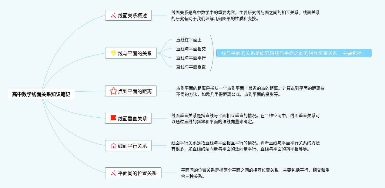 21张高中数学线面关系思维导图汇总,高中数学线面关系思维导图,内容涵盖一次函数与二次函数、平面几何、立体几何等3个知识点,21张附打印高清版,每张思维导图都非常漂亮,每张图片均附打印高清版。