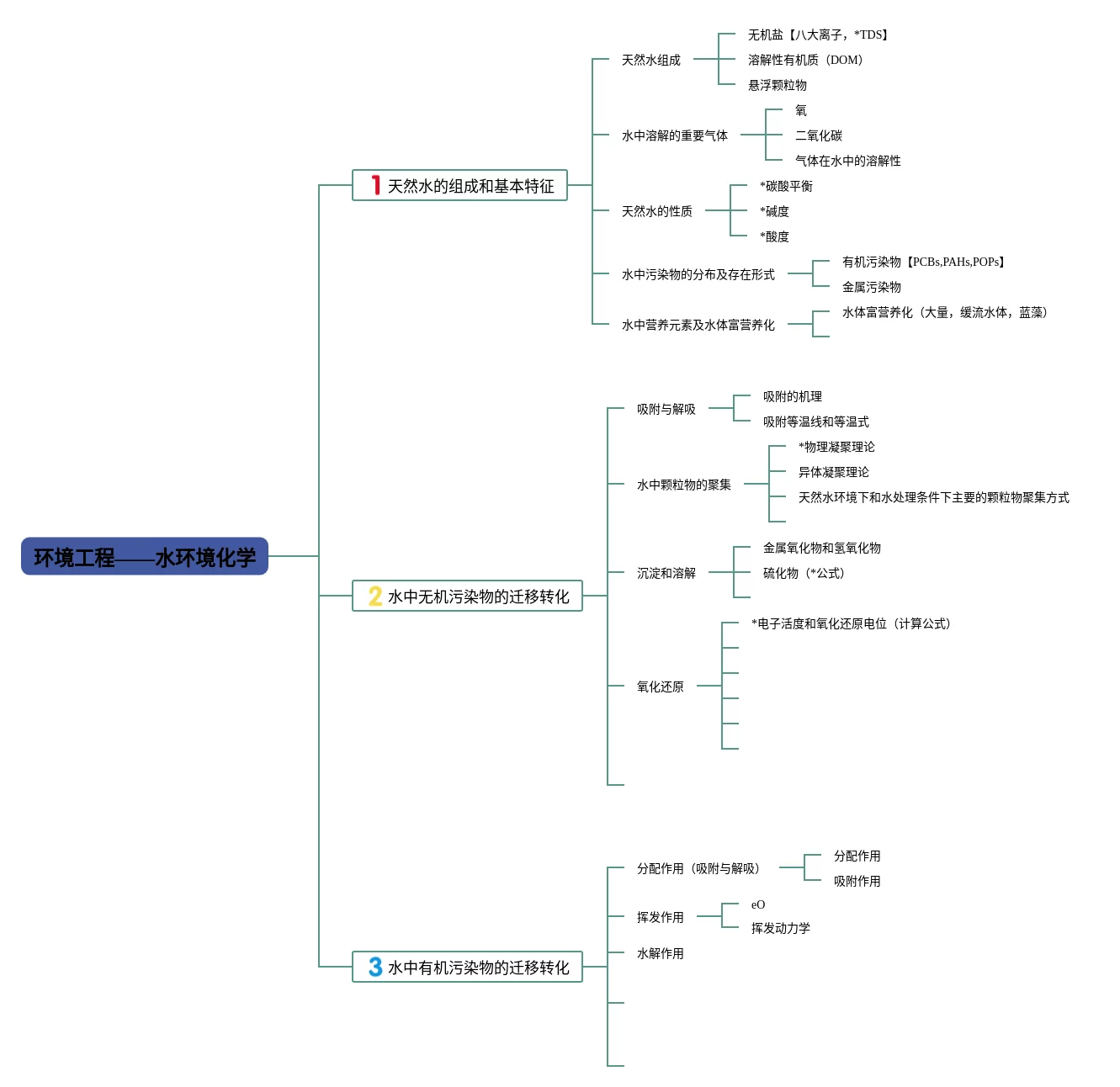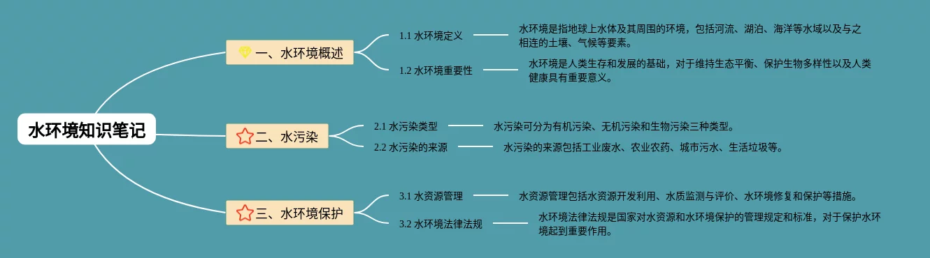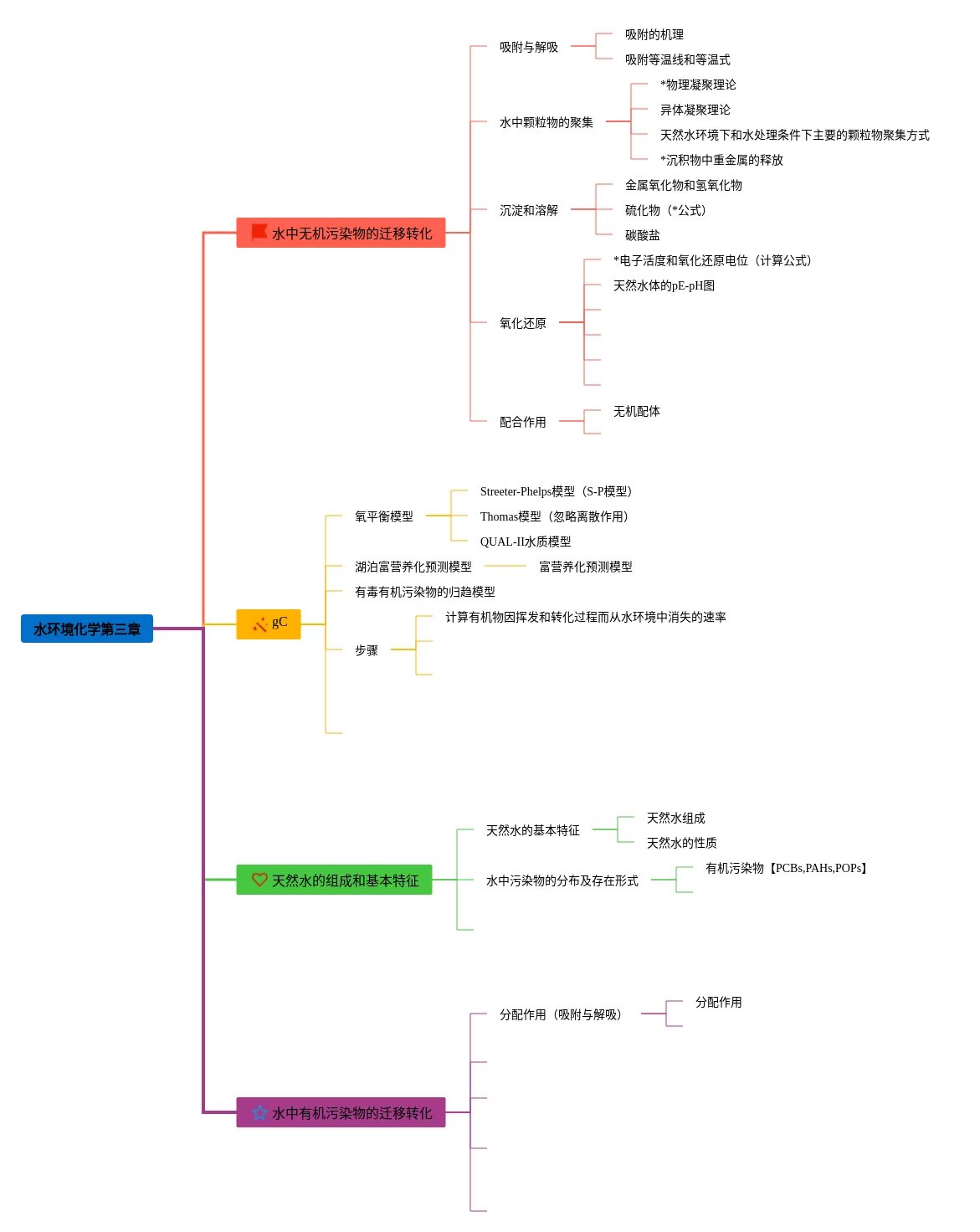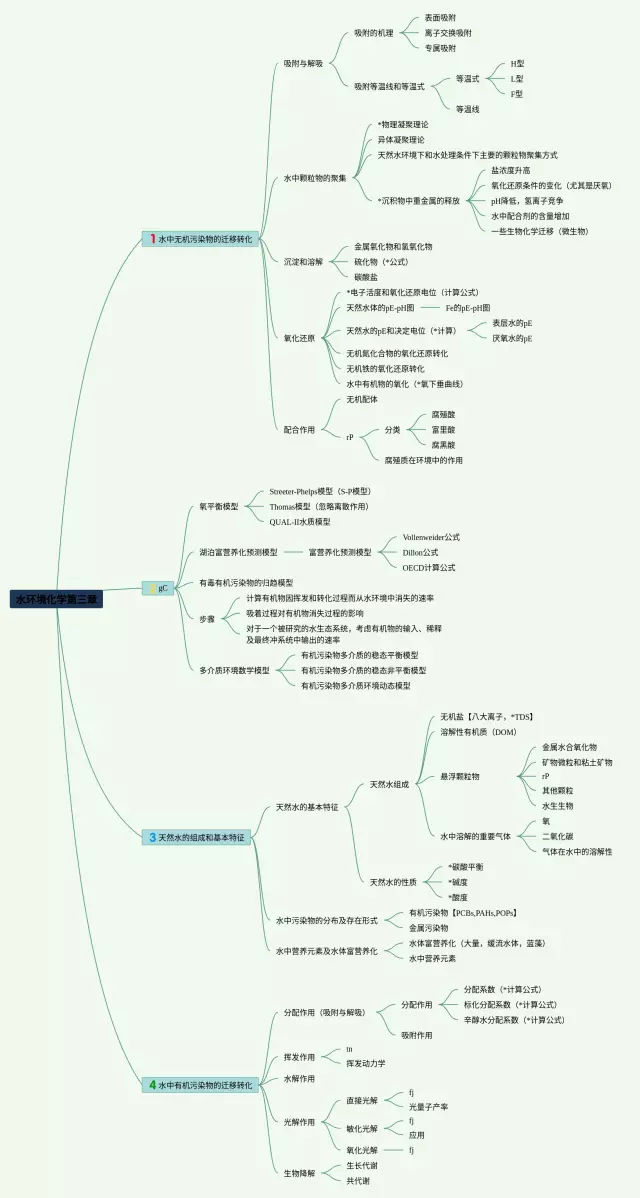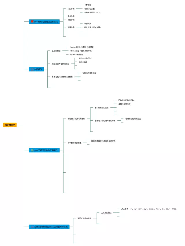 25张水环境思维导图合集,水环境思维导图,内容涵盖水中无机染物的迁移转化、天然水的组成和基本特征、水中有机染物的迁移转化等3个知识点,25张值得收藏,每张思维导图都非常简单,每张图片均值得收藏。