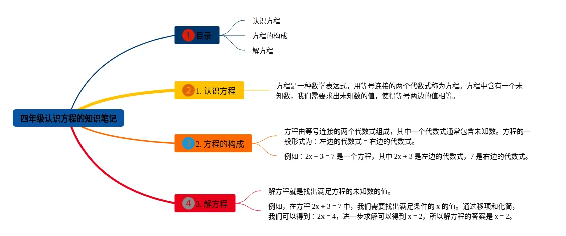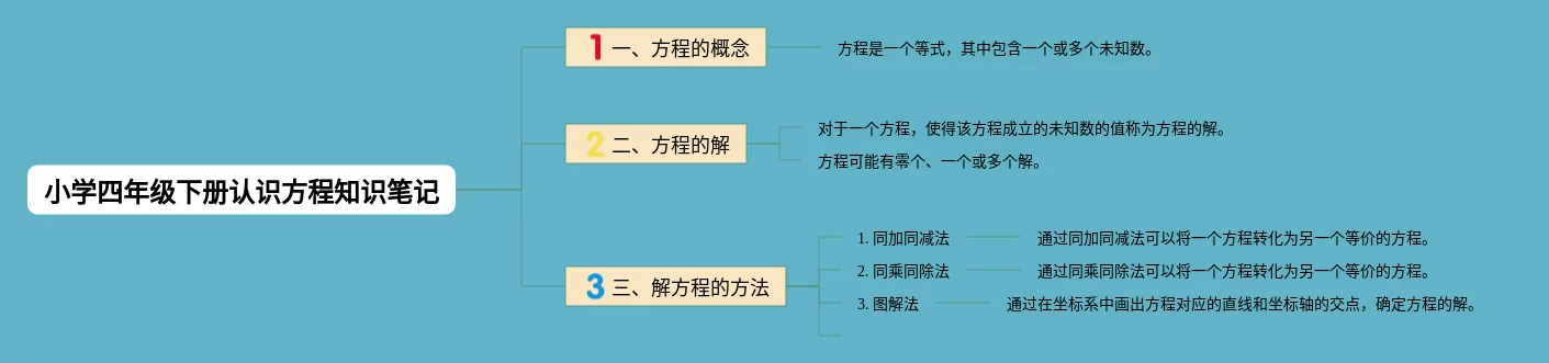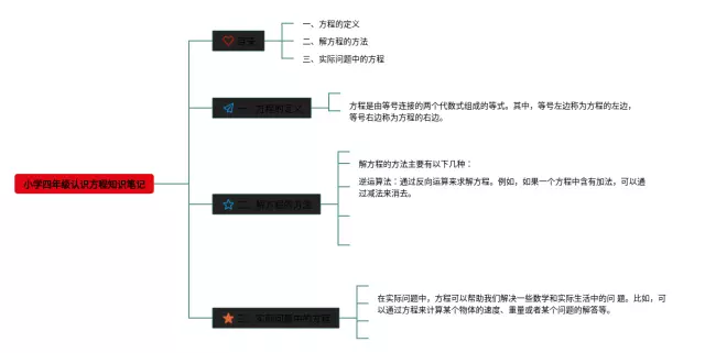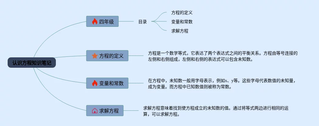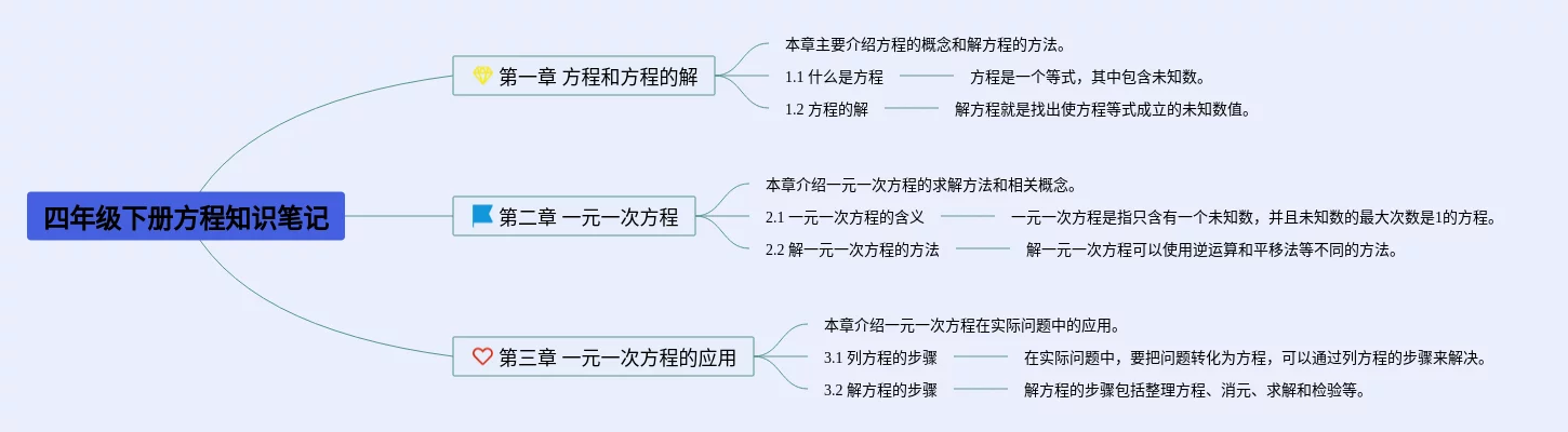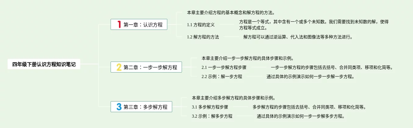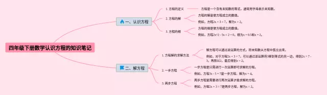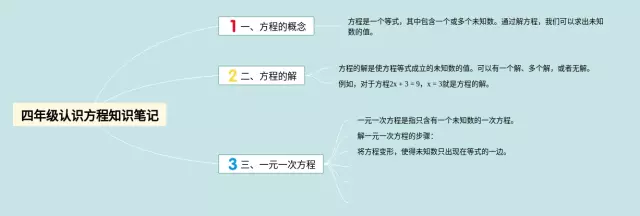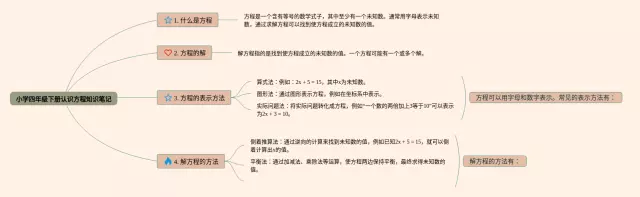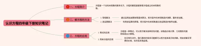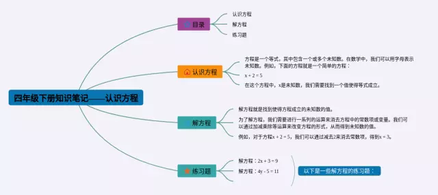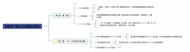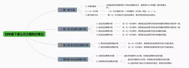 25张四年级下册认识方程的思维导图汇总,四年级下册认识方程的思维导图,内容涵盖第一章认识方程、第二章一步一步解方程、第三章多步解方程等3个部分,25张高清晰可打印,每张思维导图都非常简单,每张图片均高清晰可打印。