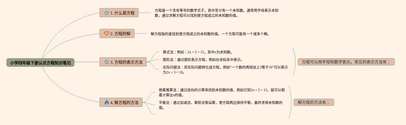 四年级下册认识方程的思维导图(25张高清晰可打印)