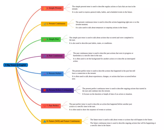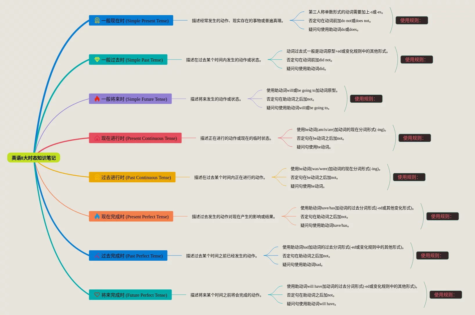 23张英语8大时态思维导图汇总,英语8大时态思维导图,内容涵盖一般现在时、一般过去时、一般将来时、现在进行时、过去进行时等6个知识点,23张可下载,每张思维导图都非常清晰,每张图片均可下载。