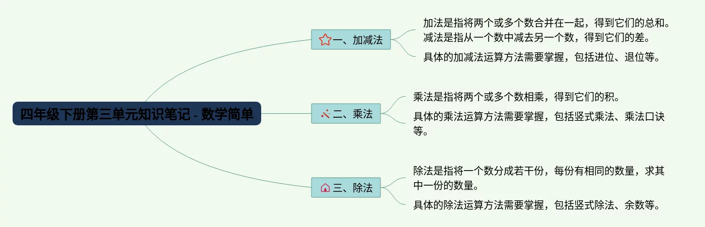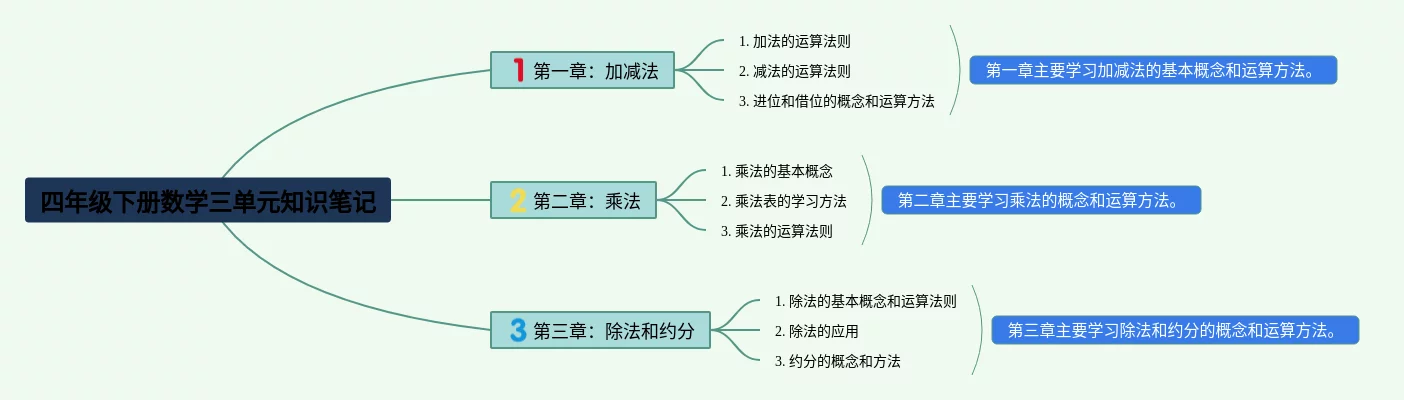 23张四年级下册三单元思维导图数学简单合集,四年级下册三单元思维导图数学简单,内容涵盖第一章加减法、第二章乘法、第三章除法和约分等3个部分,23张精选版,每张思维导图都非常清晰,每张图片均精选版。