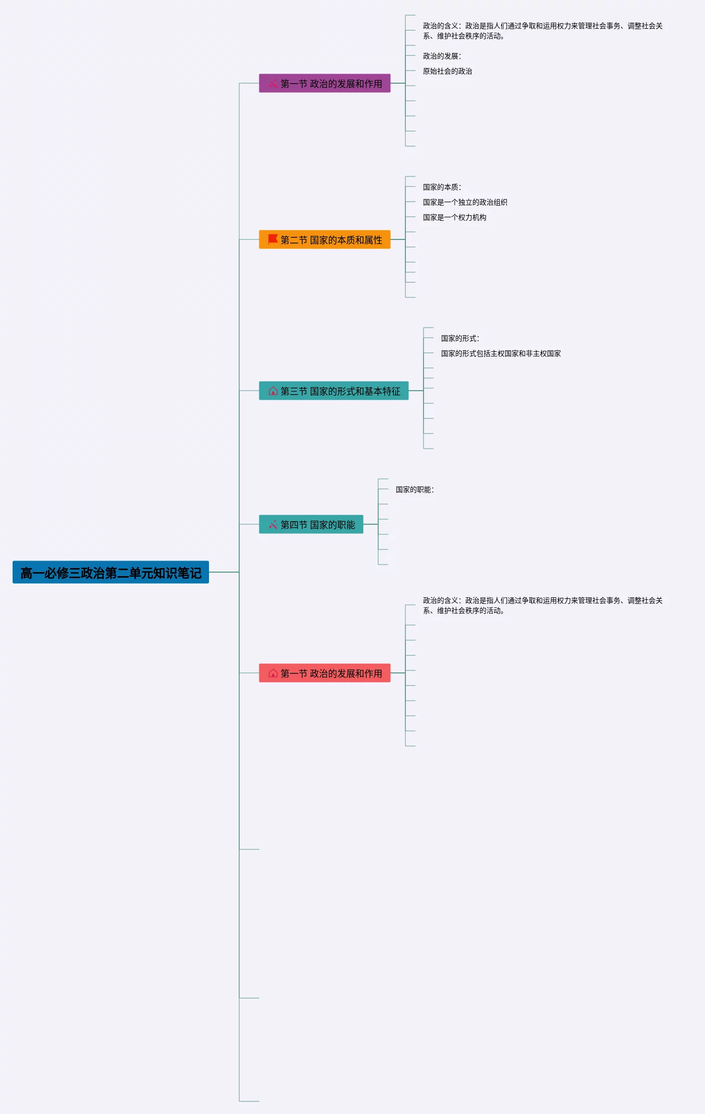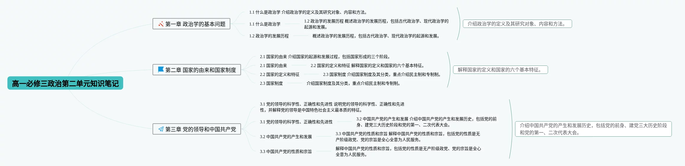 高一必修三第二单元思维导图汇总,高一必修三第二单元思维导图,内容涵盖第一章 学的基本问题、第二章 国家的由来和国家制度、第三章 党的领导和中国党等3个部分,23张可打印,每张思维导图都非常简单,每张图片均可打印。