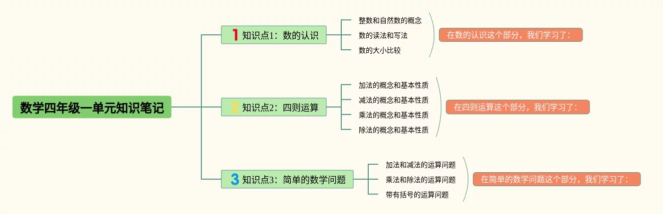数学四年级下册一单元思维导图(23张值得收藏)