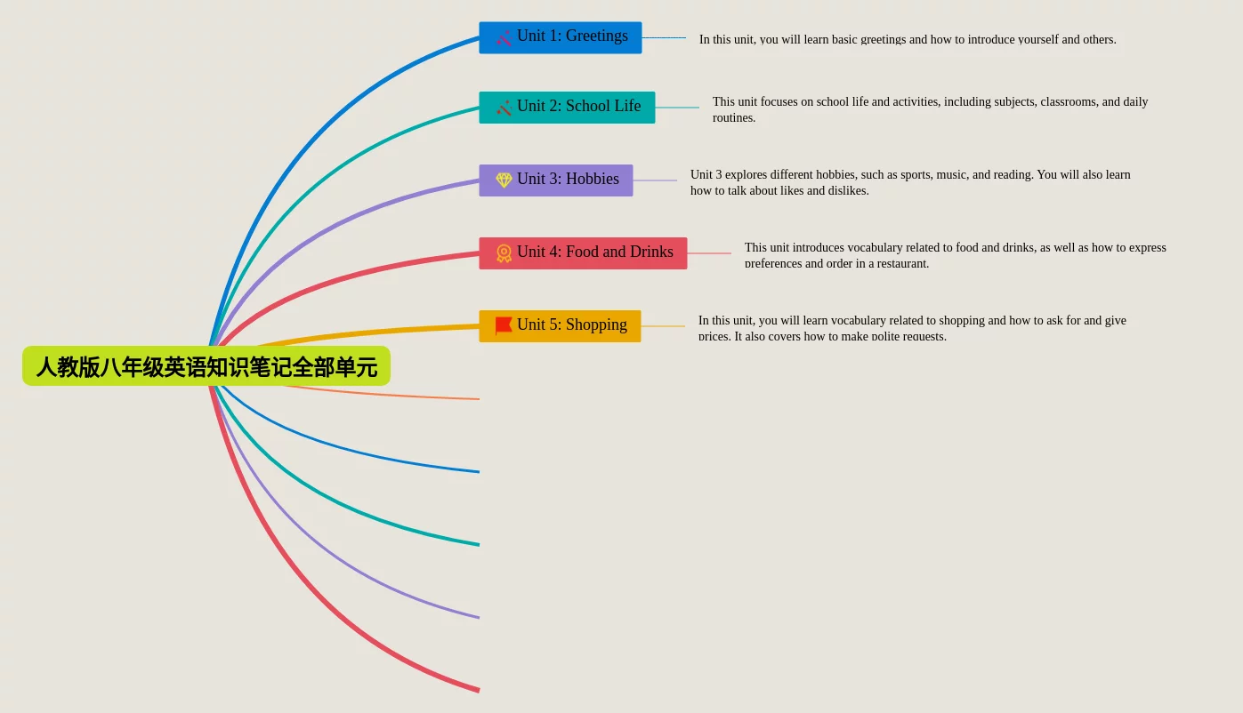 21张八年级上册英语思维导图全部汇总,八年级上册英语思维导图全部,内容涵盖第一单元地球运动与地理环境、第二单元气候与天气、第三单元大气的运动等3个方面,21张值得收藏,每张思维导图都非常漂亮,每张图片均值得收藏。