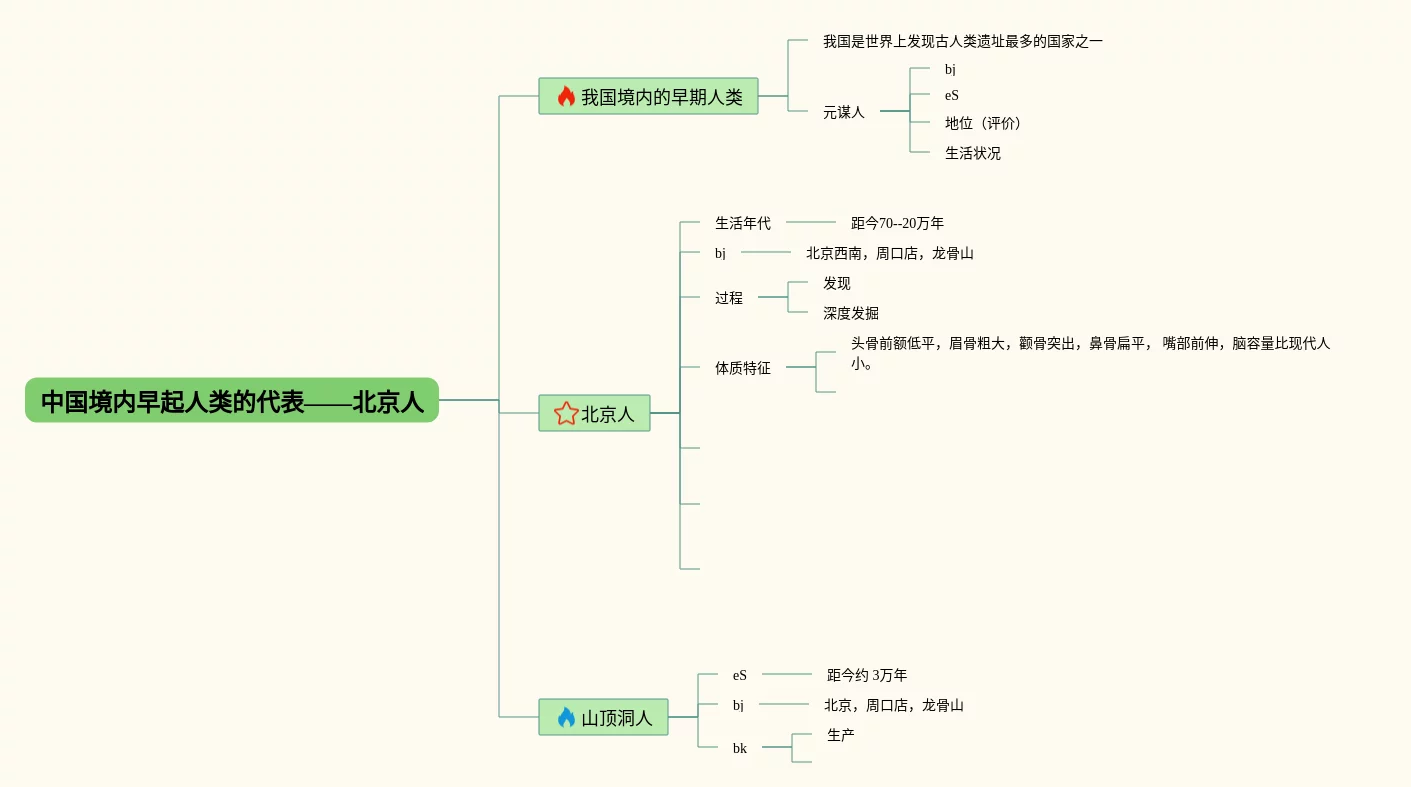 25张七年级历史元谋人北京人思维导图合集,七年级历史元谋人北京人思维导图,内容涵盖我国境内的早期人类、北京人、山顶洞人等3个方面,25张高清晰可打印,每张思维导图都非常简单,每张图片均高清晰可打印。