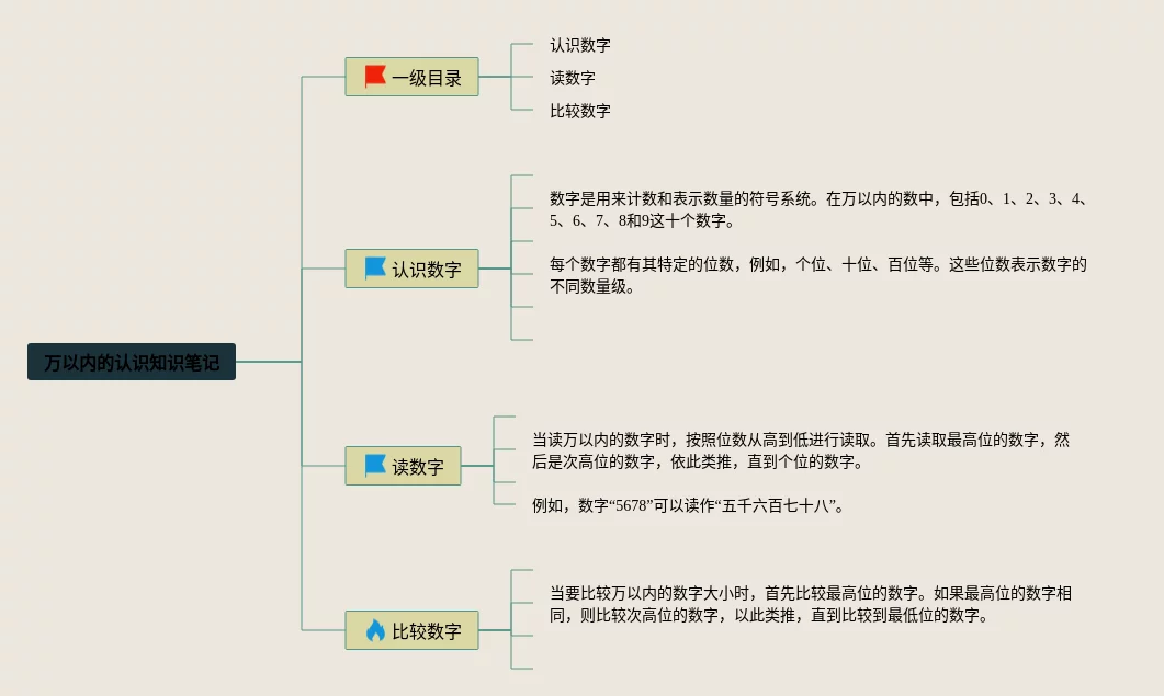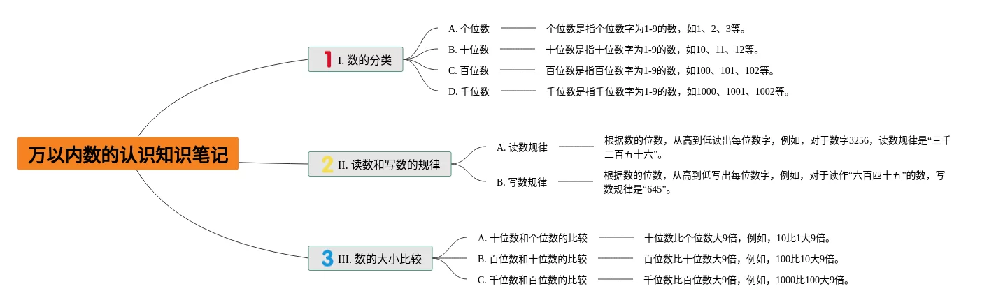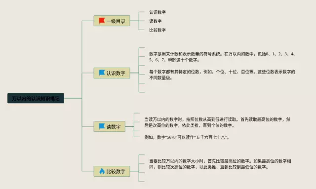 24张万以内的认识思维导图内容汇总,万以内的认识思维导图内容,内容涵盖一级目录、二级目录认识个位数、二级目录认识十位数、二级目录认识百位数等4个要点,24张精选版,每张思维导图都非常漂亮,每张图片均精选版。