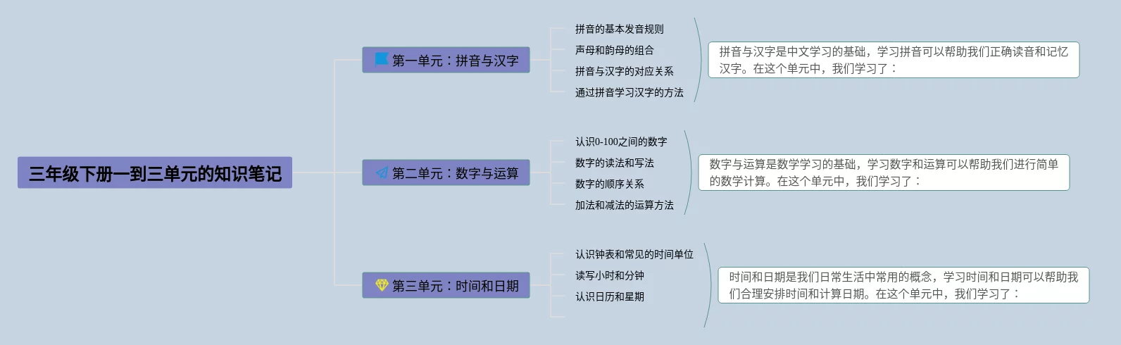 三年级下册一到八单元的思维导图(21张附下载)