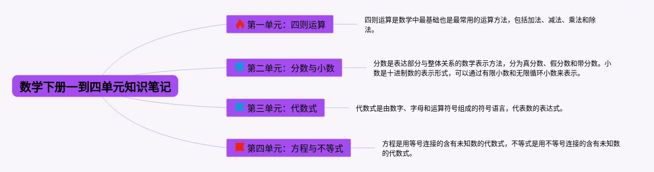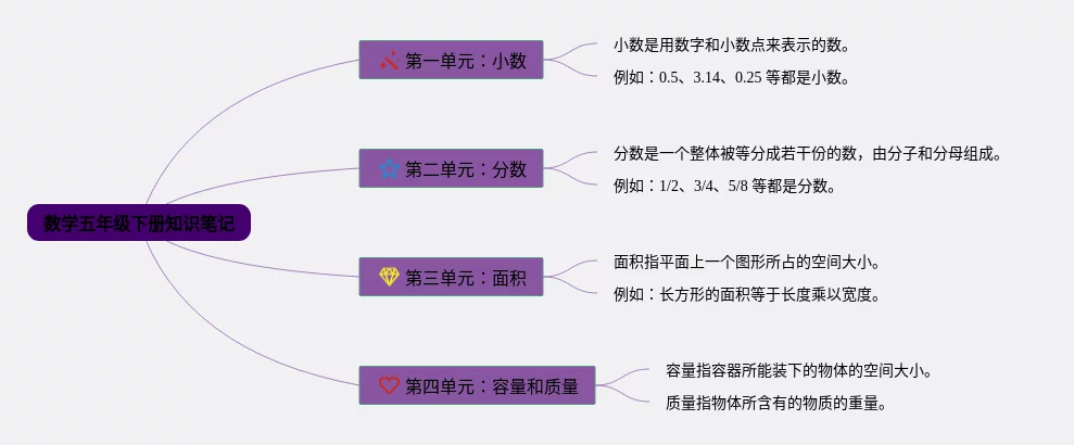 23张五年级下册一到四单元的思维导图汇总,五年级下册一到四单元的思维导图,内容涵盖一单元小数的认识与加减、二单元小数的乘法和除法、三单元分数的认识与运算、四单元小数与分数的互化等4个知识点,23张可下载,每张思维导图都非常清晰,每张图片均可下载。