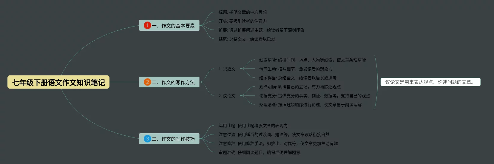 七年级下册语文作文思维导图(21张高清晰可打印)
