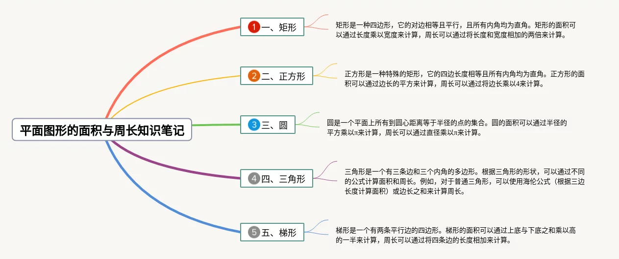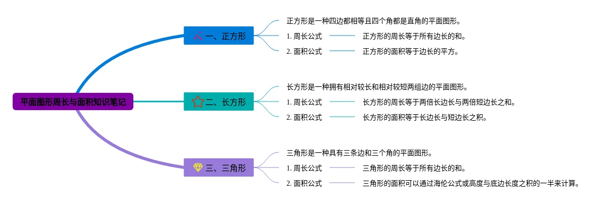 25张平面图形周长与面积思维导图六年级汇总,平面图形周长与面积思维导图六年级,内容涵盖直角三角形、矩形、圆形等3个方面,25张可打印,每张思维导图都非常清晰,每张图片均可打印。
