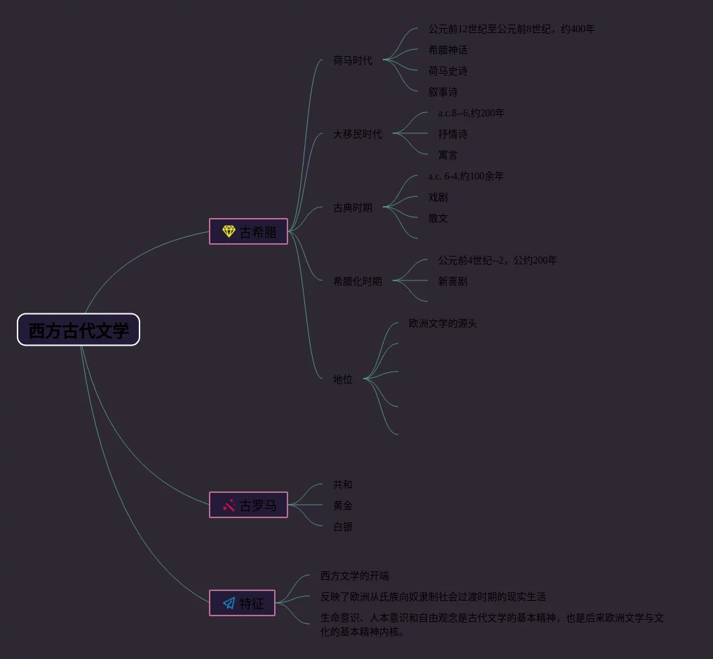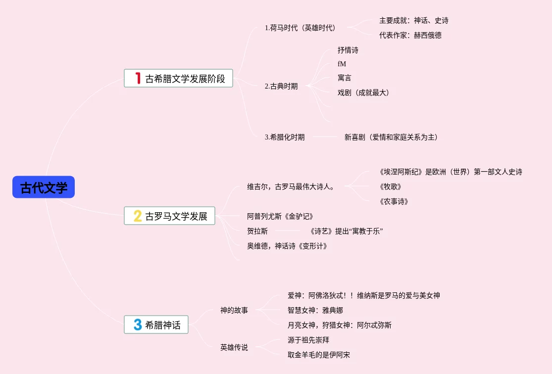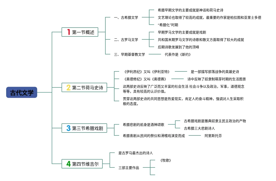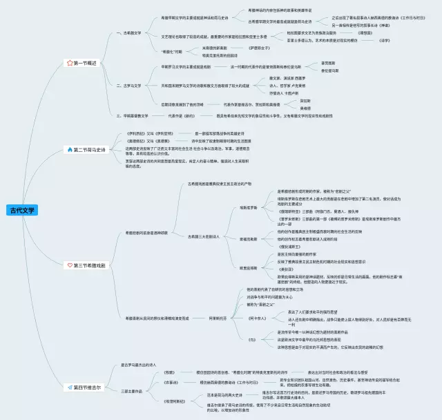 20张古代文学思维导图合集,古代文学思维导图,内容涵盖古希腊、古罗马、中世纪文学、13-17世纪等4个要点,20张附下载,每张思维导图都非常简单,每张图片均附下载。