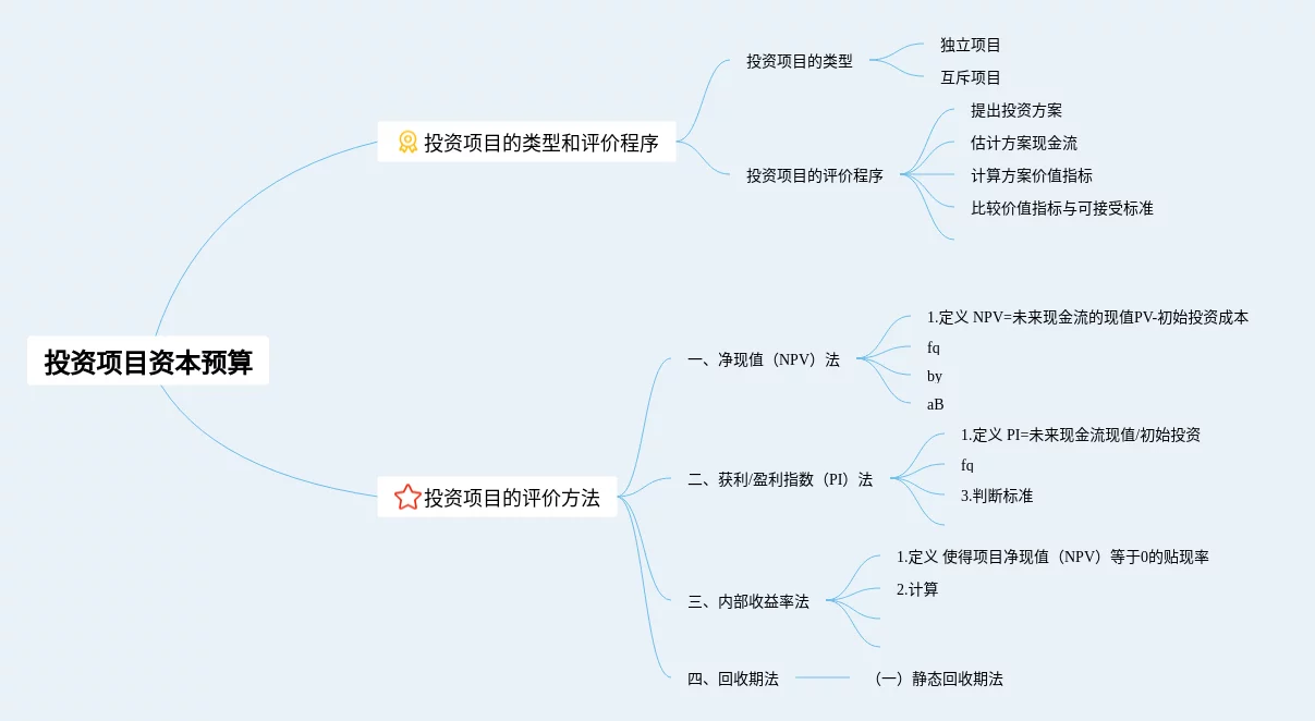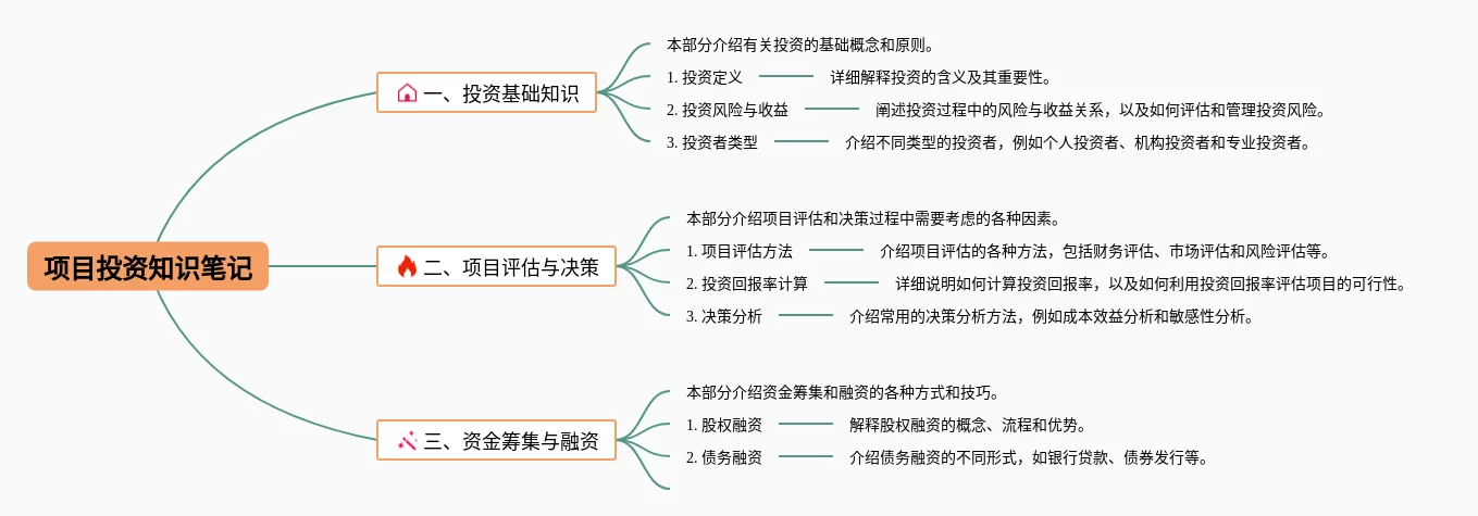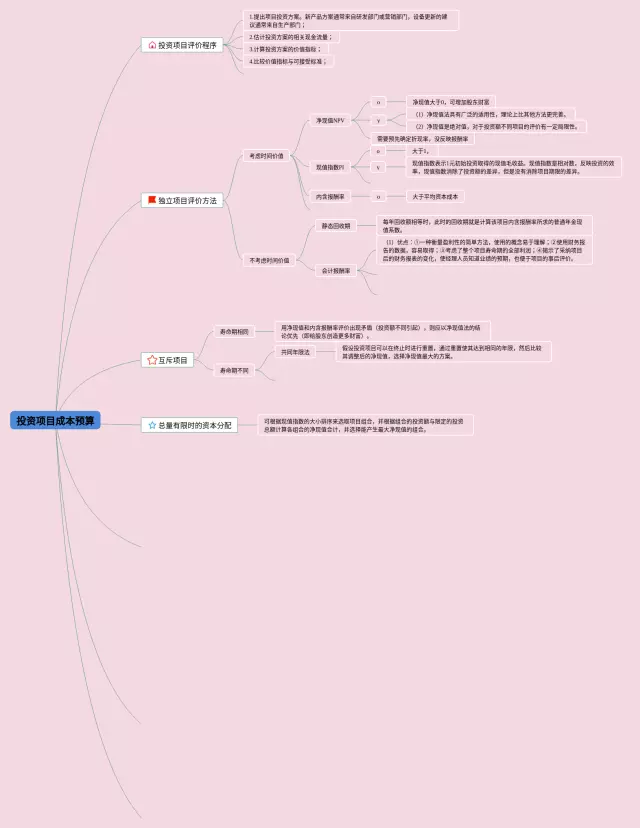 20张项目投资思维导图汇总,项目投资思维导图,内容涵盖投资基础知识、项目评估与决策、资金筹集与融资等3个部分,20张附打印高清版,每张思维导图都非常漂亮,每张图片均附打印高清版。