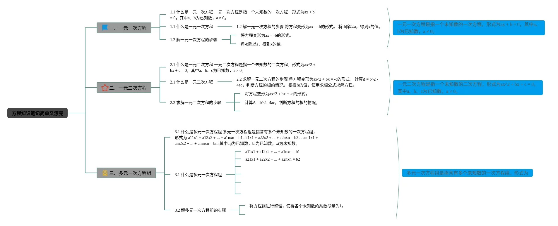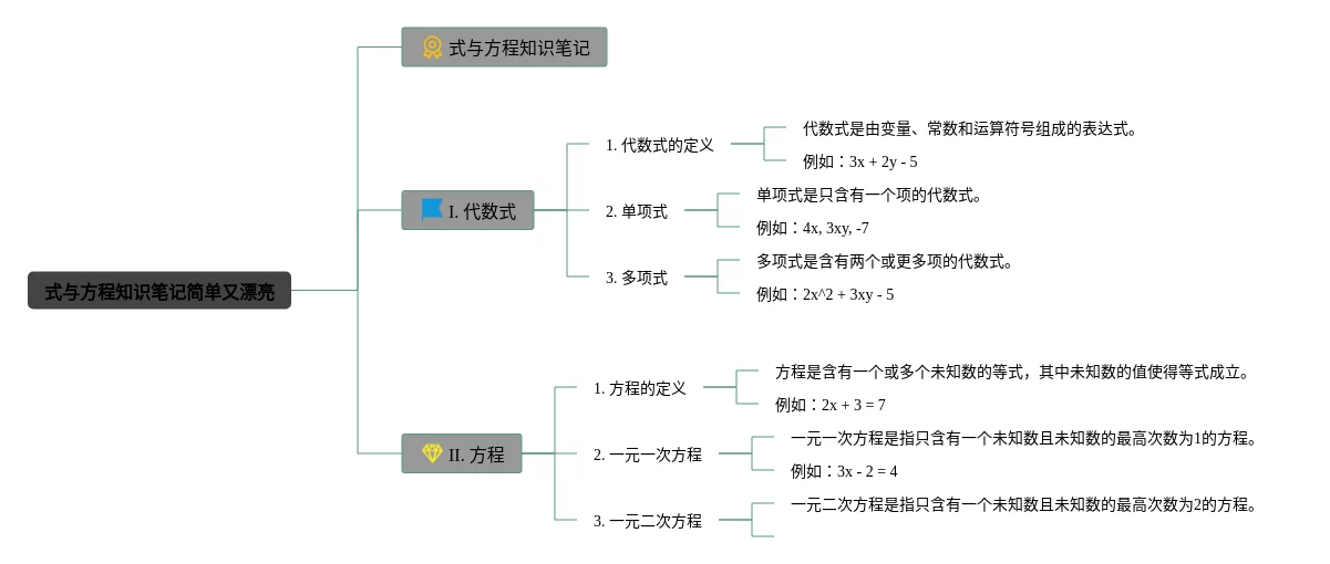 25张四年级方程思维导图简单又漂亮汇总,四年级方程思维导图简单又漂亮,内容涵盖式的概念、方程的概念、一元线性方程、一元二次方程等4个方面,25张高清晰可打印,每张思维导图都非常清晰,每张图片均高清晰可打印。