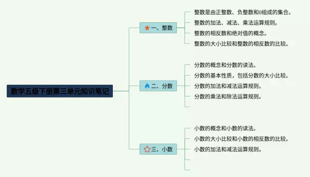 25张数学五级下册第三单元思维导图合集,数学五级下册第三单元思维导图,内容涵盖整数、分数、小数等3个方面,25张精选版,每张思维导图都非常漂亮,每张图片均精选版。