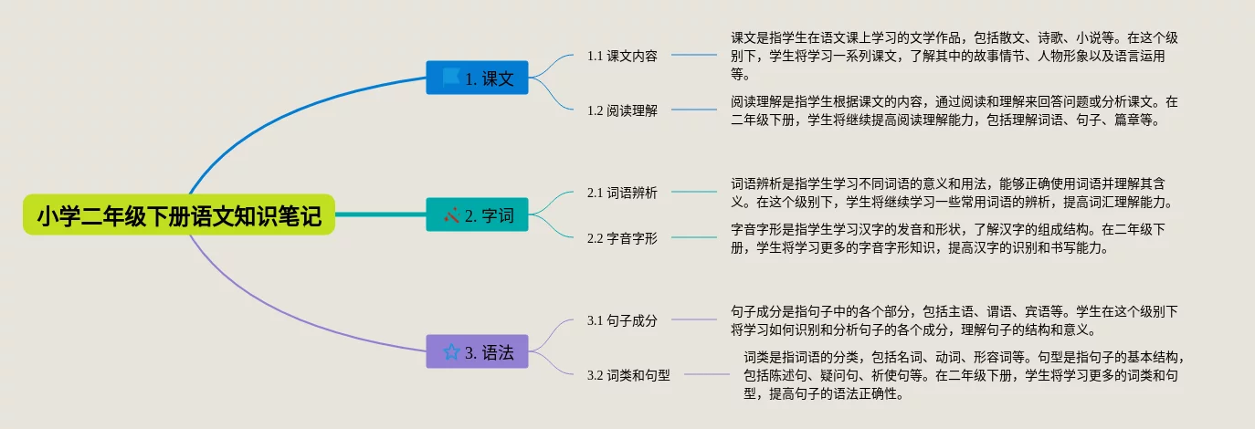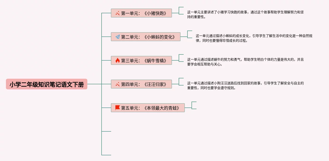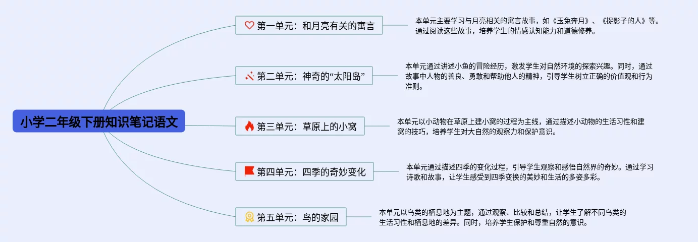 小学二年级下册思维导图合集,小学二年级思维导图语文下册,内容涵盖知识结构、逻辑结构、价值意义结构、能力结构等4个部分,24张附下载,每张思维导图都非常简单,每张图片均附下载。