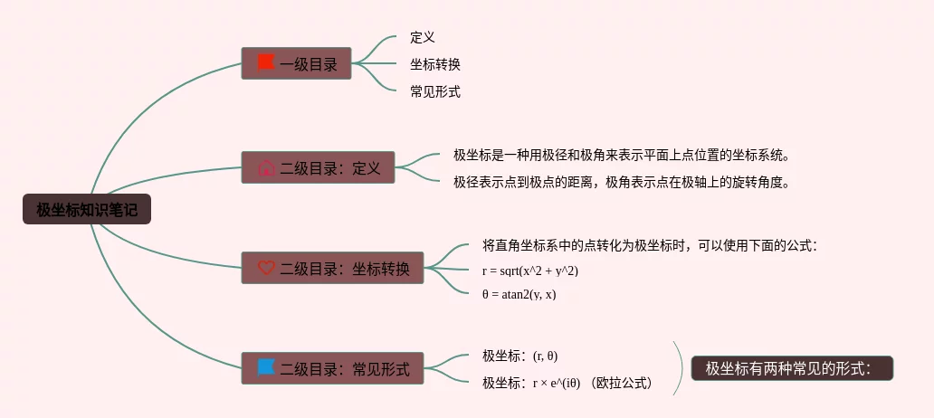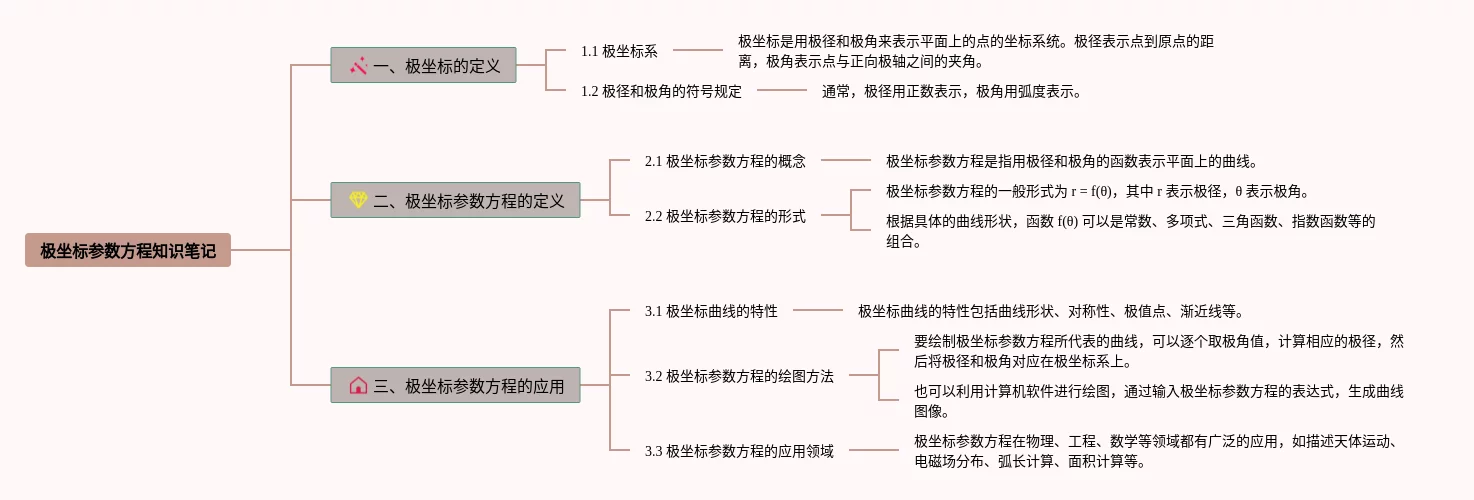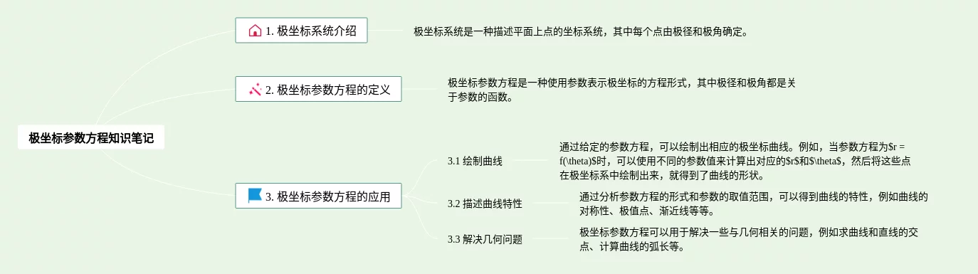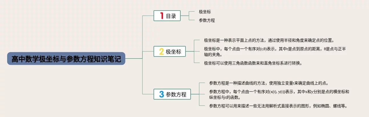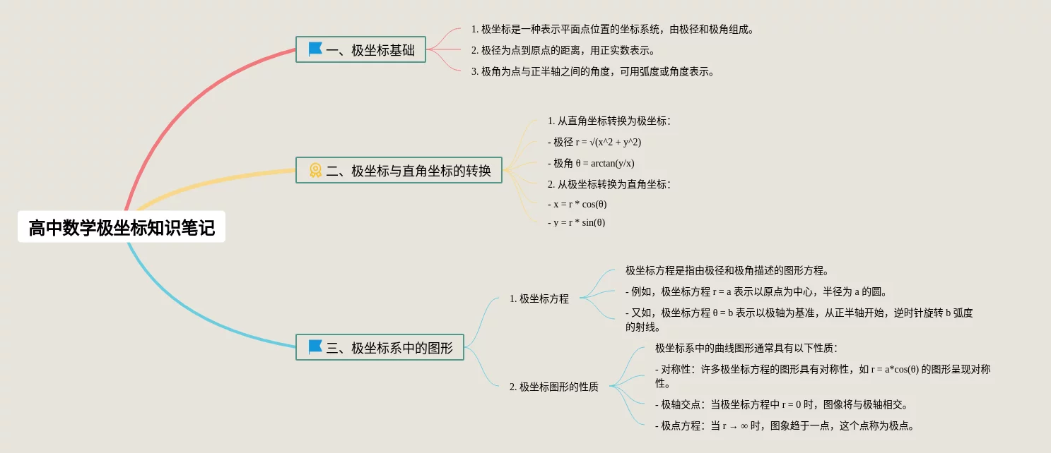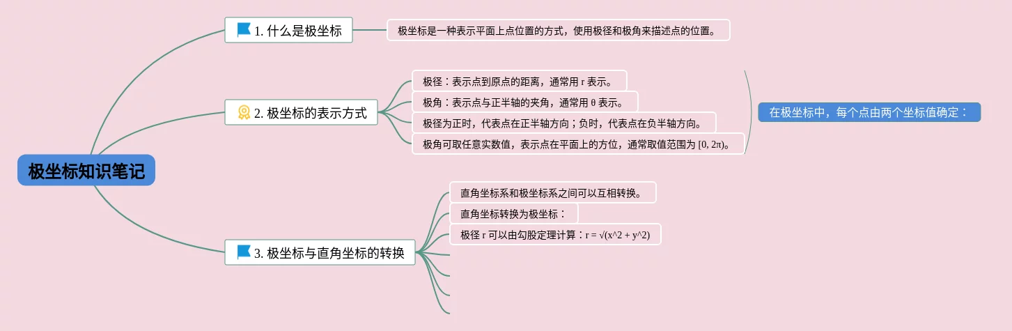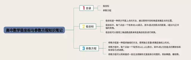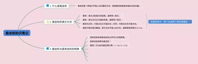 23张高中数学极坐标思维导图合集,高中数学极坐标思维导图,内容涵盖1. 什么是极坐标、2. 极坐标的表示方式、3. 极坐标与直角坐标的转换等3个方面,23张附下载,每张思维导图都非常清晰,每张图片均附下载。