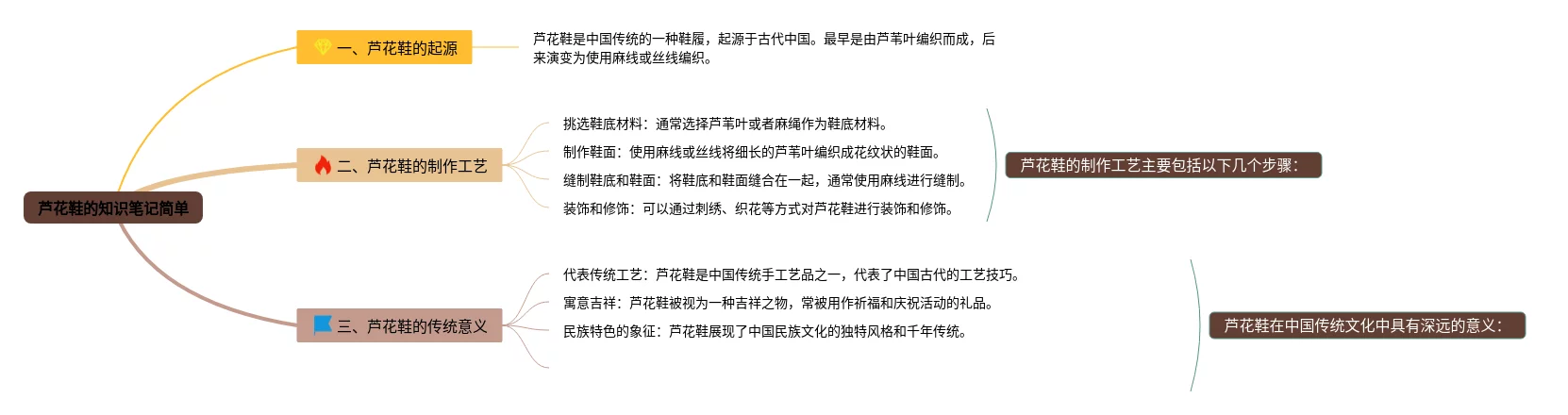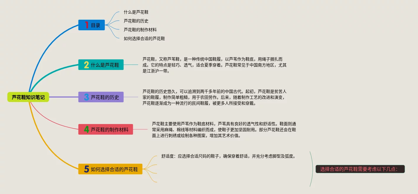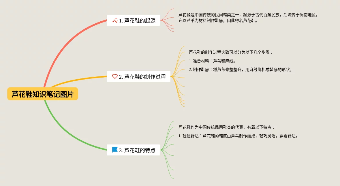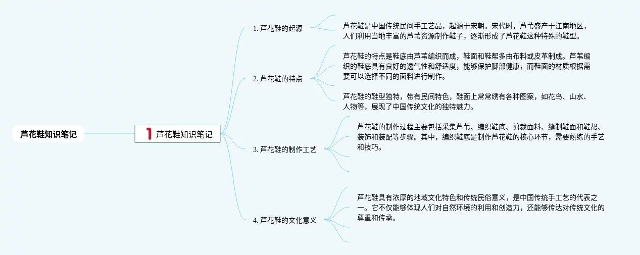 22张芦花鞋的思维导图合集,芦花鞋的思维导图,内容涵盖芦花鞋的起源、芦花鞋的特点、芦花鞋的使用与保养等3个方面,22张可打印,每张思维导图都非常简单,每张图片均可打印。