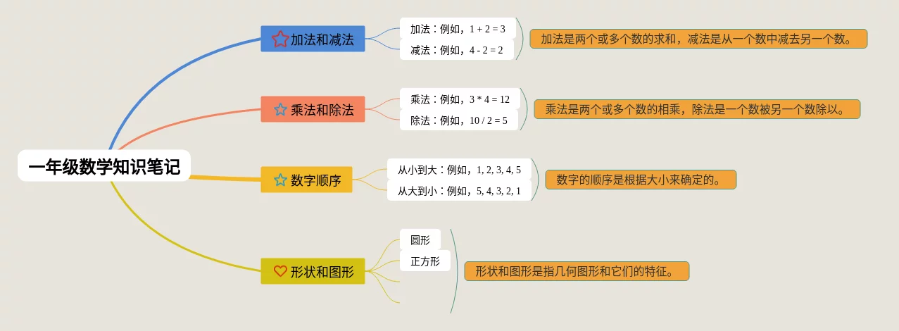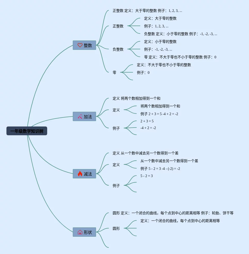 24张一年级数学知识树思维导图汇总,一年级数学知识树思维导图,内容涵盖整数、加法、减法、形状等4个方面,24张精选版,每张思维导图都非常简单,每张图片均精选版。