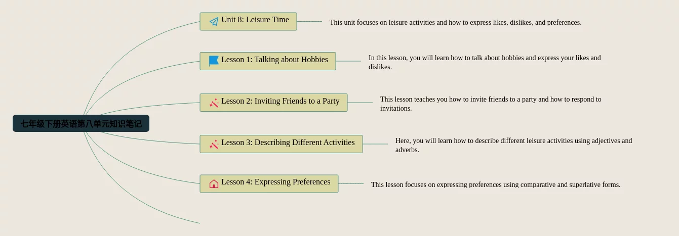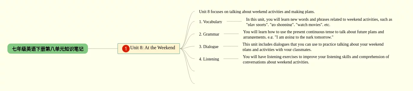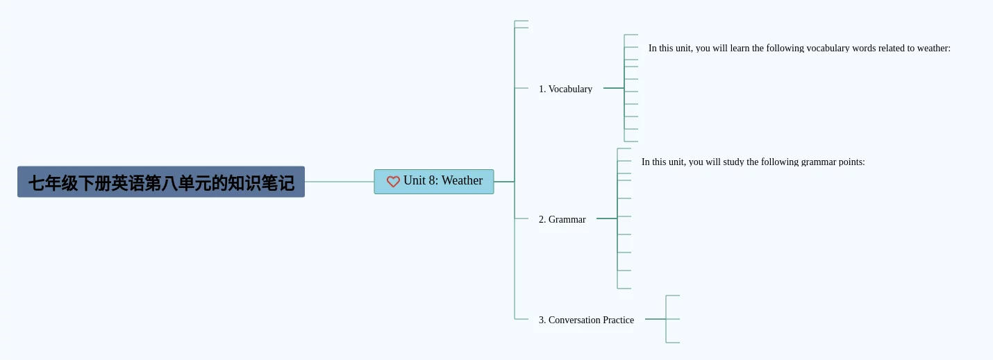 22张七年级下册英语第八单元的思维导图汇总,七年级下册英语第八单元的思维导图,内容涵盖等0个要点,22张高清版,每张思维导图都非常简单,每张图片均高清版。
