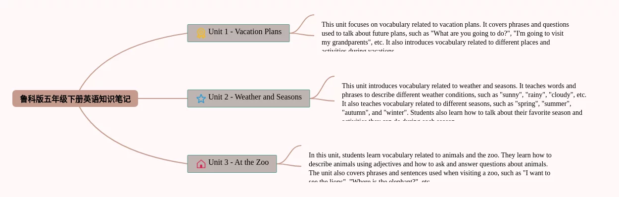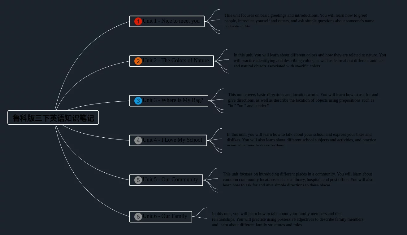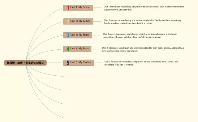 鲁科版三年级下册思维导图汇总,鲁科版三年级英语下册思维导图,内容涵盖第一部分词汇、第二部分句型、第三部分阅读理解等3个知识点,22张可打印,每张思维导图都非常简单,每张图片均可打印。