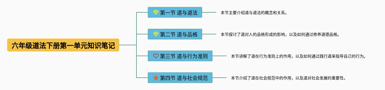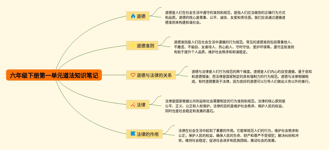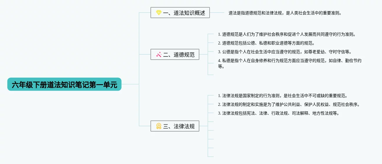 20张六年级下册第一单元道法思维导图合集,六年级下册第一单元道法思维导图,内容涵盖道法知识概述、道德规范、法律法规等3个部分,20张附下载,每张思维导图都非常清晰,每张图片均附下载。