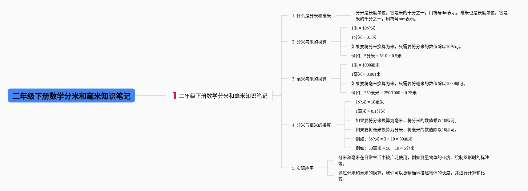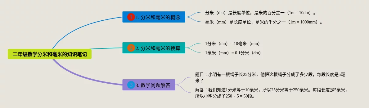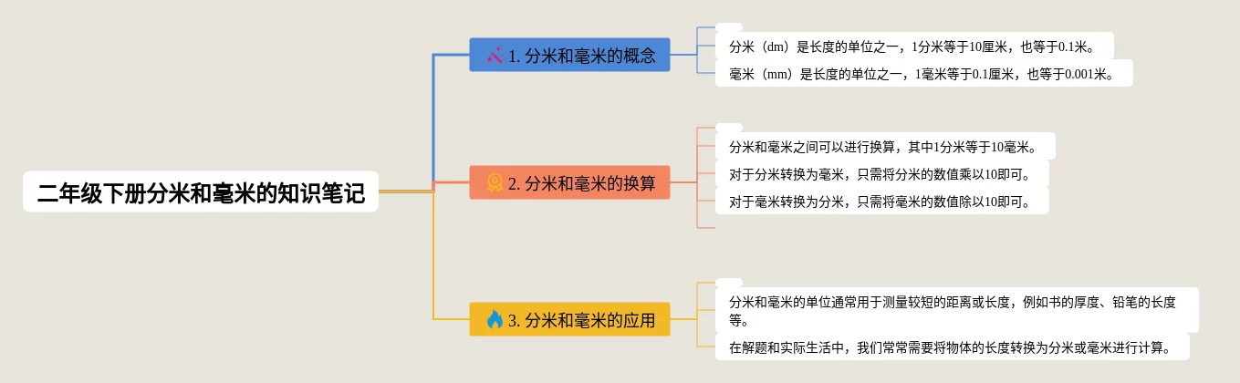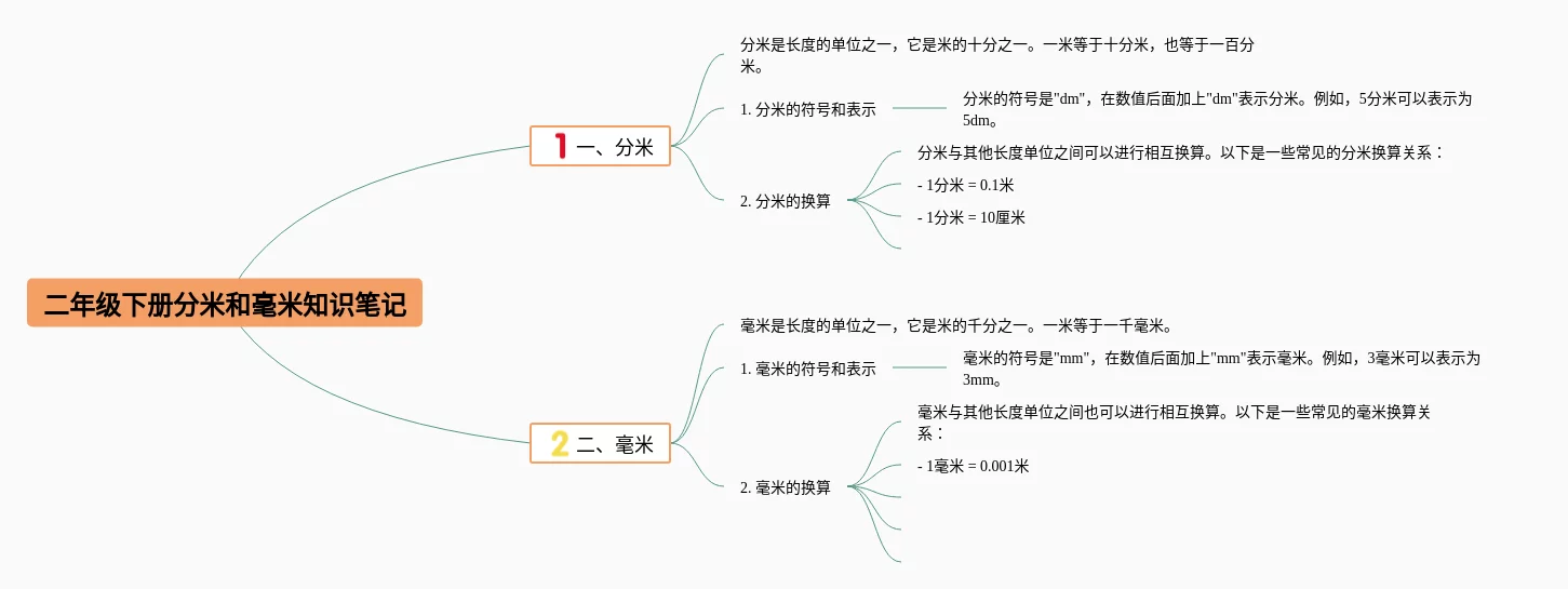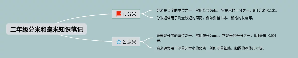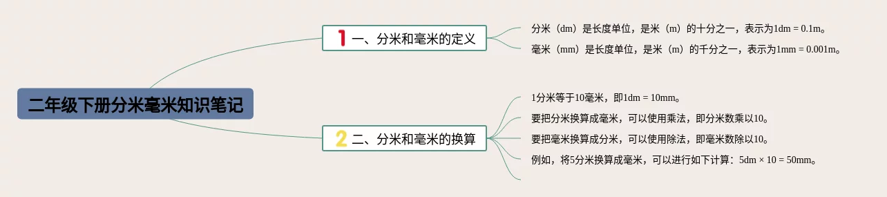 二年级分米和毫米思维导图(23张高清晰可打印)